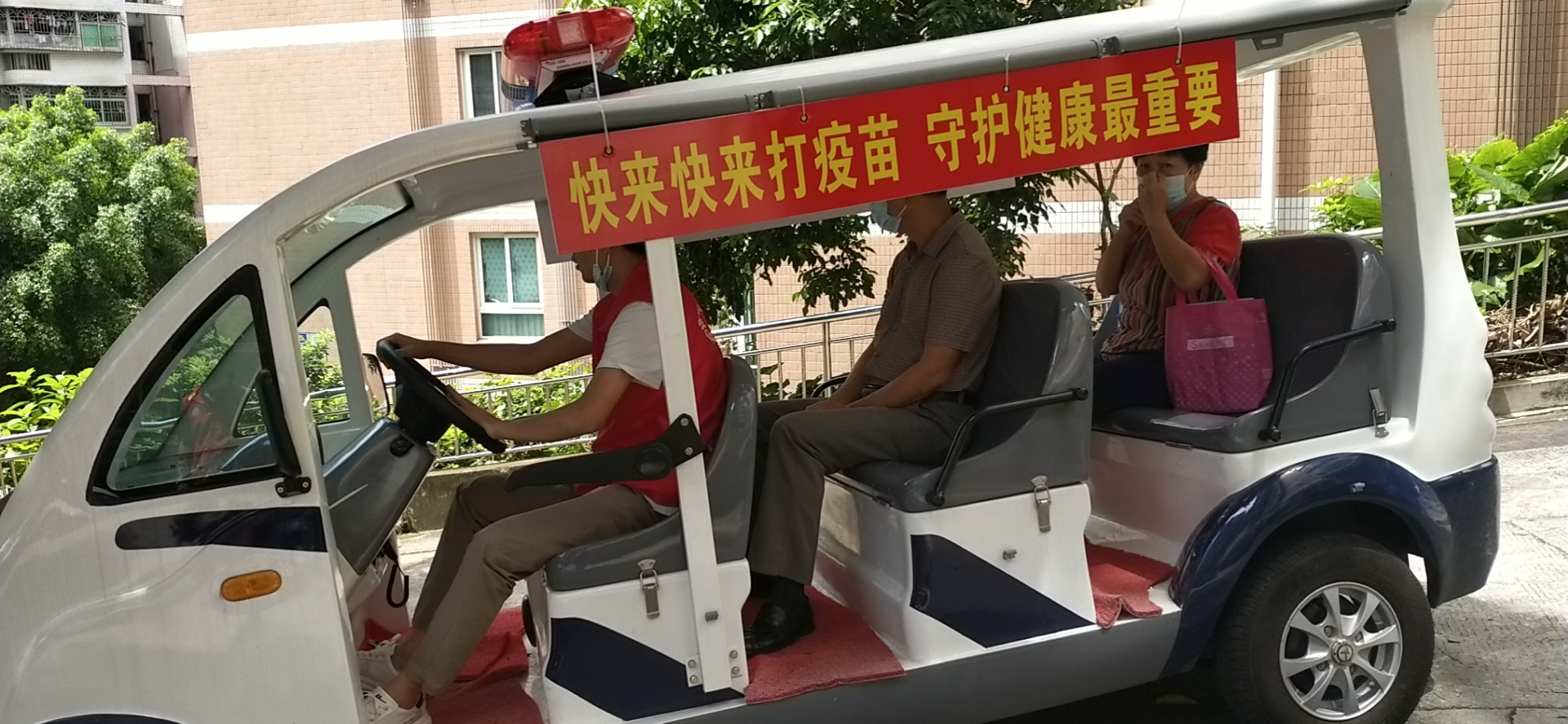 “之前我认为自己年纪大了,不适合接种疫苗。社区工作站的工作人员安排专车接送我们,来了社康之后,医生为我进行健康检查,评估结果说我满足接种要求,我很高兴,立即决定接种,多一份保障嘛!”家住翠鹏辖区小区的一位70岁居民老人说。