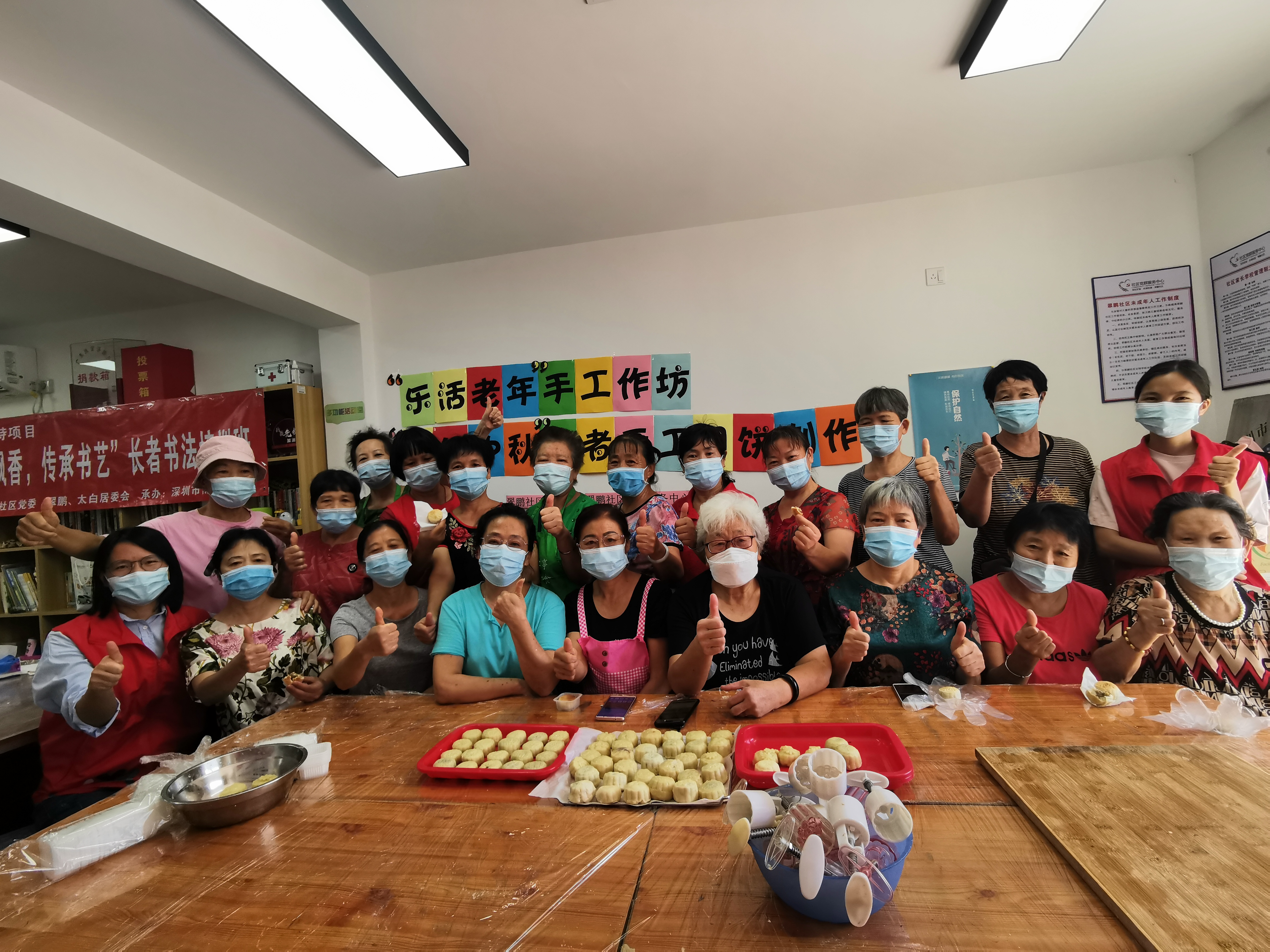 来自五湖四海的长者,欢聚一起,各显身手,有的负责和面,有的负责压模,有的负责烘烤......不到三个小时,150个香喷喷的月饼整整齐齐的地摆放在桌面。虽然都是第一次动手做月饼,但大伙儿都做得有模有样的,当看到一个个漂亮的月饼从自己手中诞生时,大伙儿都异常兴奋和满足。居民们纷纷品尝自己亲手做的第一个月饼 ,吃得津津有味。刘阿姨说:“第一次做月饼,开始的时候好紧张,但是慢慢掌握了窍门后,就放松下来了,我很享受这个制作过程,不知道是不是自己亲自动手的原因,月饼吃起来都觉得格外的香。”毕阿姨说:“自己动手制作月饼,还是第一回呢!一个流程下来,发现原来月饼制作并不复杂,又掌握了一门新技能。”