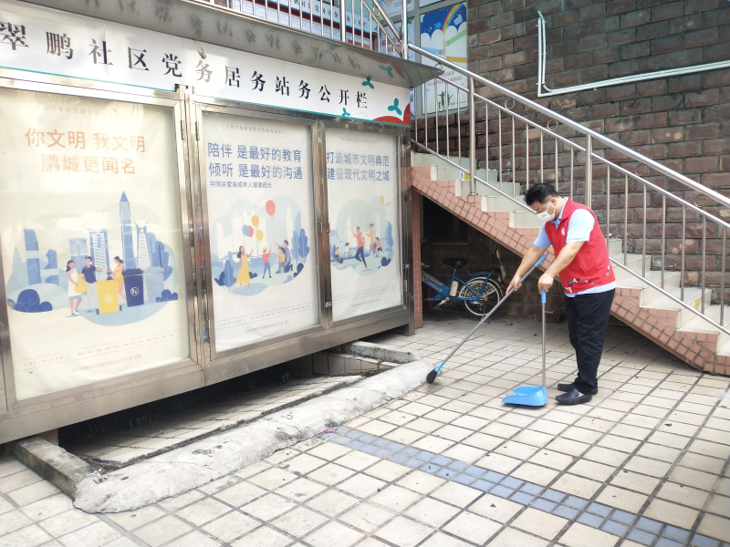 翠鹏社区将创文工作精细落实到各个责任单位,明确分工,同时每天值班的工作人员针对存在的问题,严格按照文明城市创建相关要求进行整改:整治攻坚提升行动,清除辖区内各道路垃圾、杂草杂物,清洗道路,整治占道经营,整治广告乱张贴或公益海报破损老旧情况,对辖区内背街小巷开展环境秩序提升行动,优化提升周边环境卫生、停车秩序,打造干净整洁、文明有序的小区居住环境。