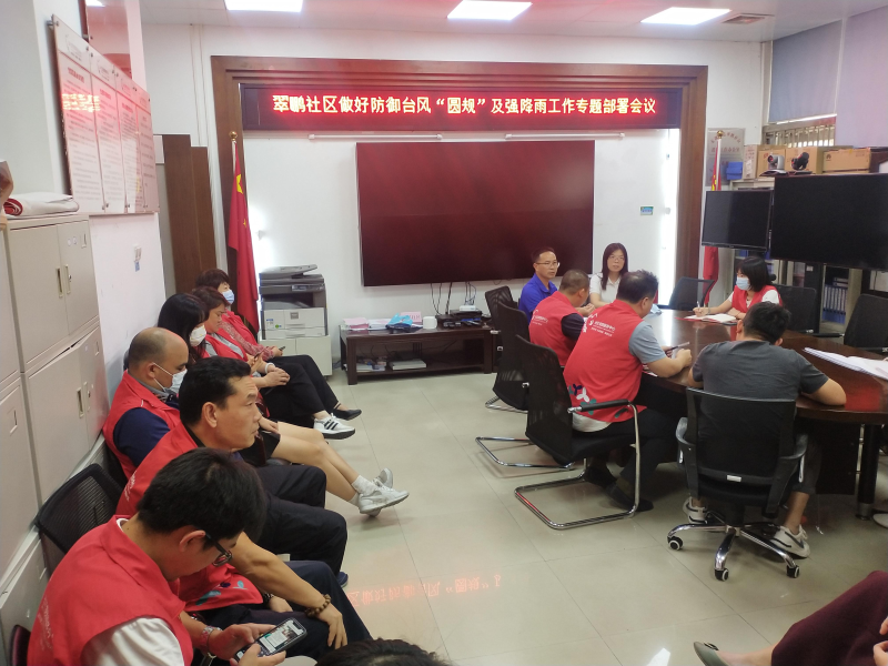 会上强调了社区工作人员需强化风险意识,严格贯彻落实防风防汛工作,始终把人民群众生命财产安全放在第一位,并提出了防御台风“圆规”来临前的部署工作:需加强隐患排查整治、加强值班值守、加强物资储备和信息报送的工作,扎实做好各项防风防汛应急措施,确保辖区安全稳定。