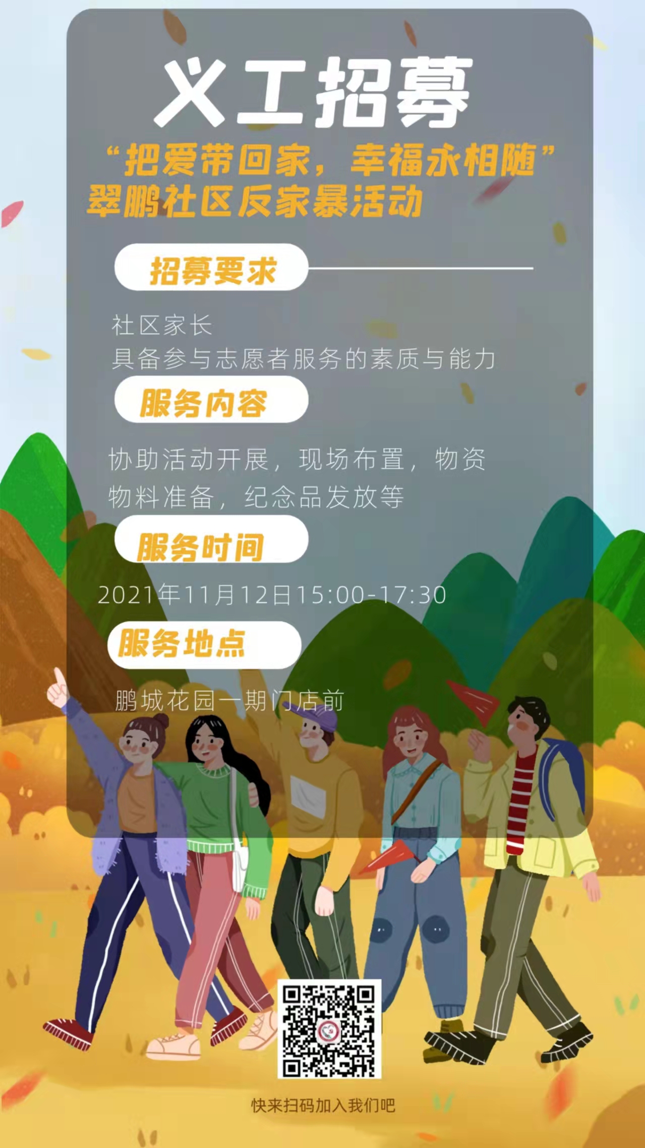 【义工招募】“把爱带回家,幸福永相随”翠鹏社区反家暴活动