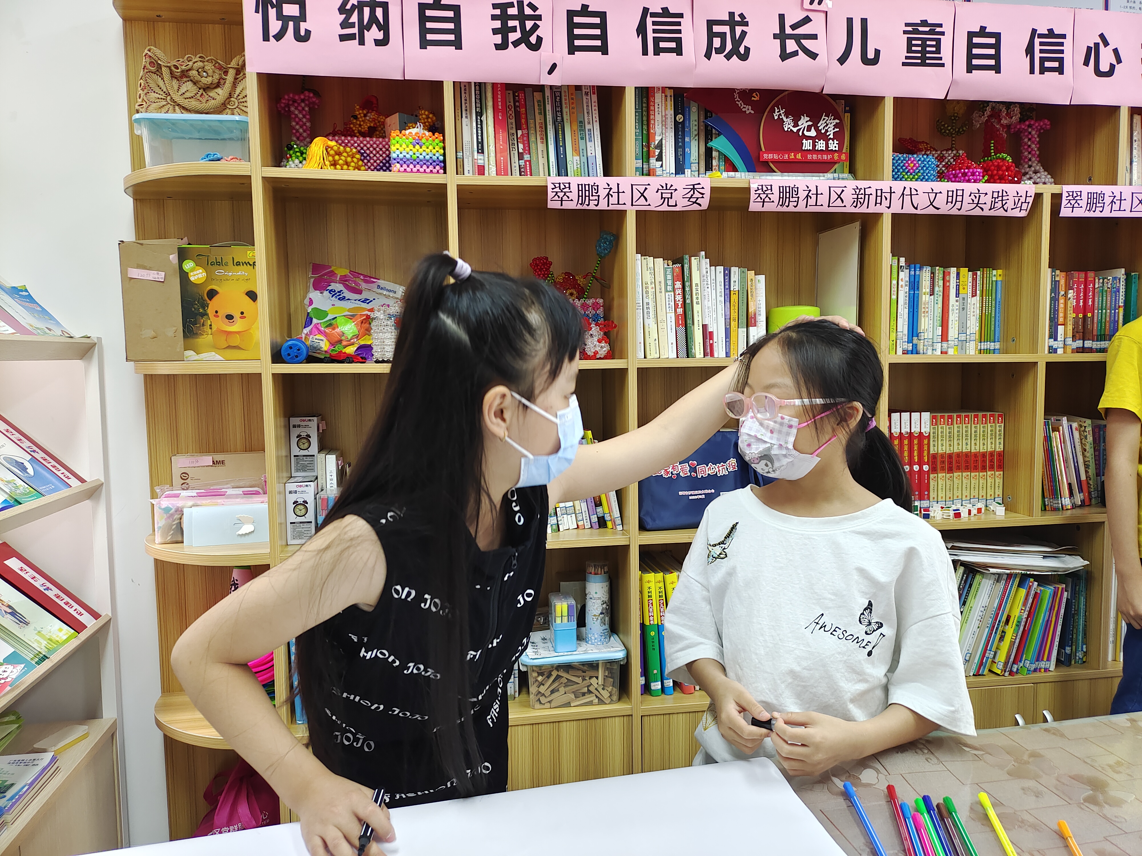 为让社区儿童客观认识自我、悦纳自我,认识自己的优点和长处,在翠鹏社区党委的指导下,翠鹏社区党群服务中心依托翠鹏社区新时代文明实践站平台于5月15日-29日期间开展共计5节的“悦纳自我,自信成长”自信心提升小组,让社区儿童在轻松愉悦的氛围中提升自信心。