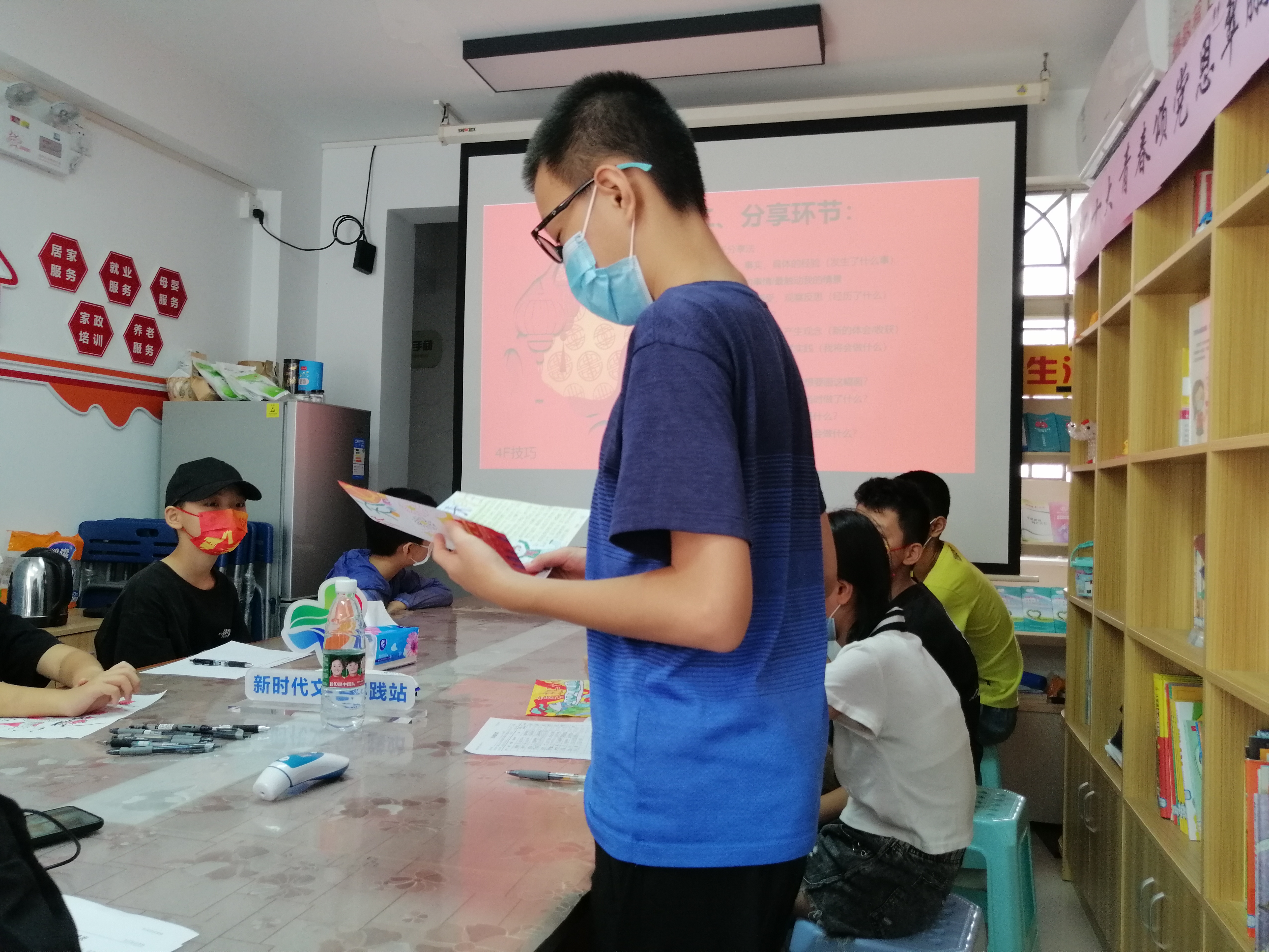 来到画作分享环节,社工引导孩子们利用4F分享法鼓励孩子们进行分享,小小的手抄报,满满的爱国情,同学们以画寄情,表达着自己对祖国的热爱和祝福。在社工的带领下,孩子们坚持不批判原则、利用仔细观察等技巧鼓励孩子们用发现的眼光寻找每副画报的闪光点并且相互赞美,此环节不仅让孩子们学习了如何传递正能量,同时也提高了孩子们的表达能力,被赞美的那一刻自信心也渐渐增强。