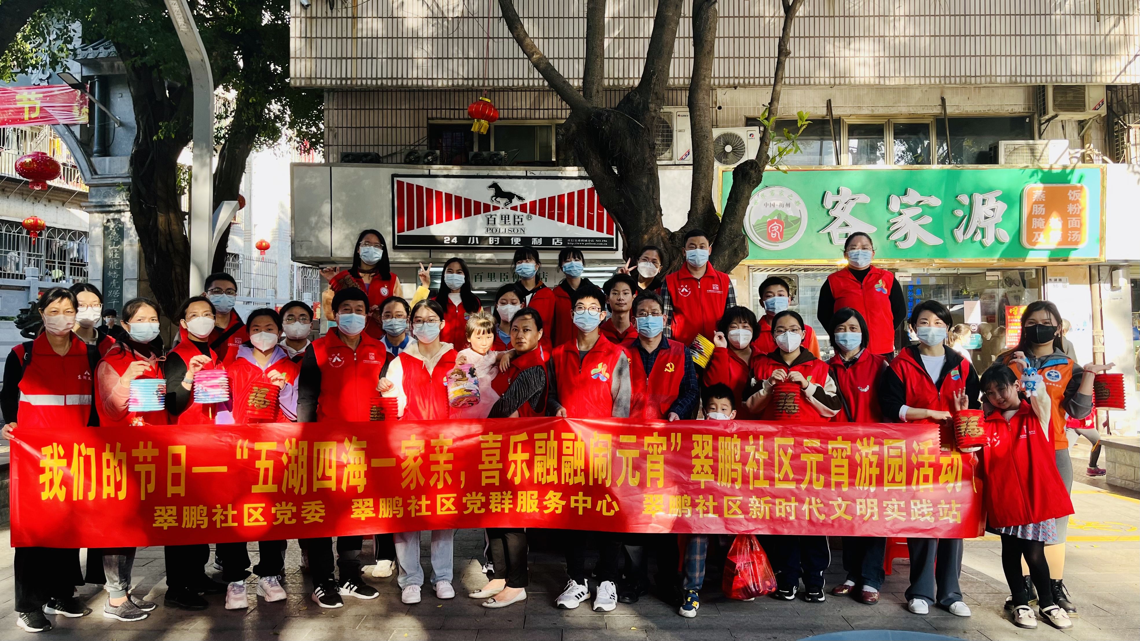 “元夕烟火华人盼,宵汉星辉光彩鲜”,为了丰富居民生活,共同庆祝元宵佳节,传承中国节日文化,2月2日下午,翠鹏社区党群服务中心、翠鹏社区新时代文明实践站在翠鹏社区党委的指导下在东湖路鹏城门店开展了主题为我们的节日--“五湖四海一家亲,喜乐融融闹元宵”游园活动,通过元宵节日习俗,一起感受浓厚的节日氛围,本次活动吸引了上百名居民的参加与围观。