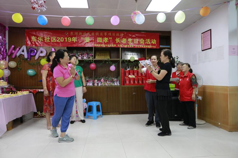 2019年9月19日9点半,东湖街道民生微事实项目扶持的“爱·微孝”东乐社区长者生日会第二十场,在东乐社区老年人星光之家开始了。