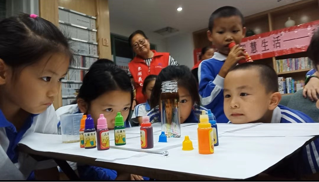 在老师做完演示之后,小朋友们在义工的协助下,自由地分好了组,自由地展开了实验,他们对这些神奇的现象投入了极大的热情。义工们并没有对小朋友的实验进行过多的干预,她们让小朋友们自由地设计实验、自由地创造实验。