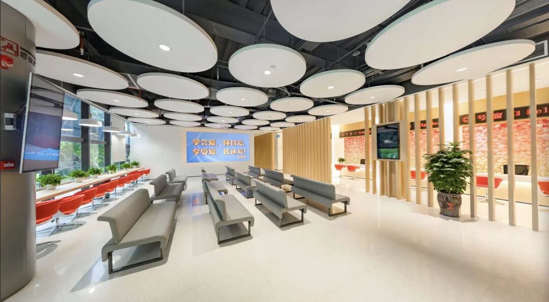 大厅突破传统设计,融入一半山水一半城的地域元素,创新结构改造,打造双4.5m、入口10m挑高空间。