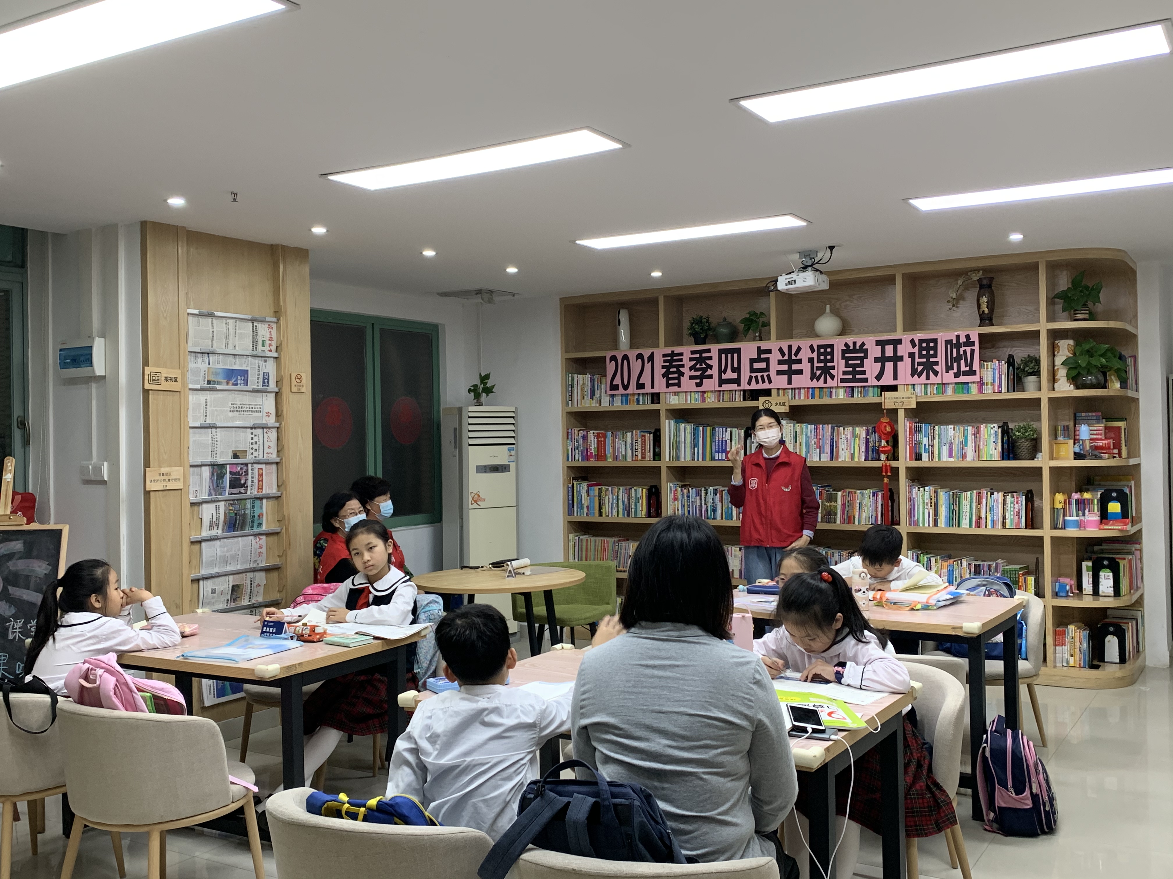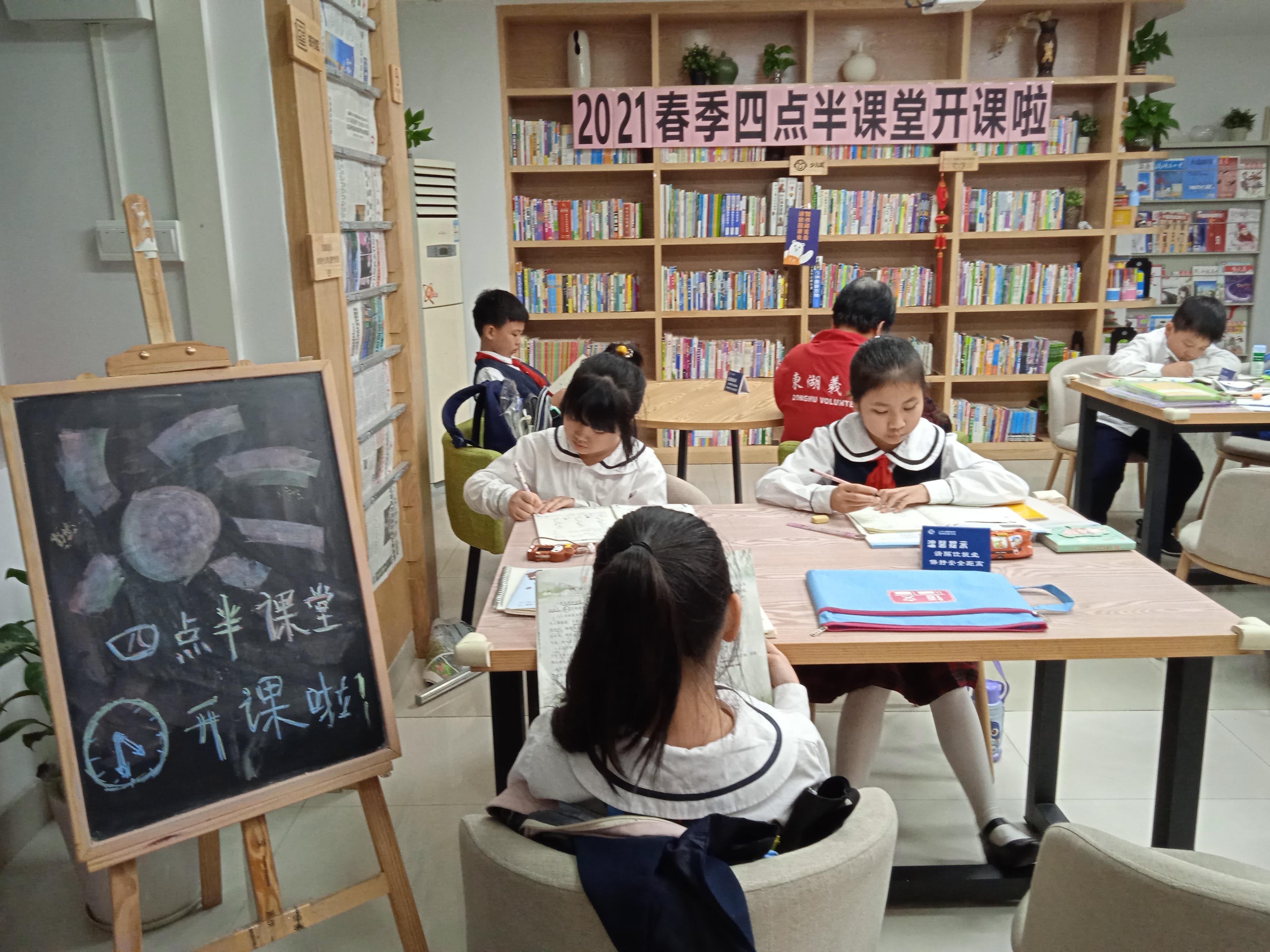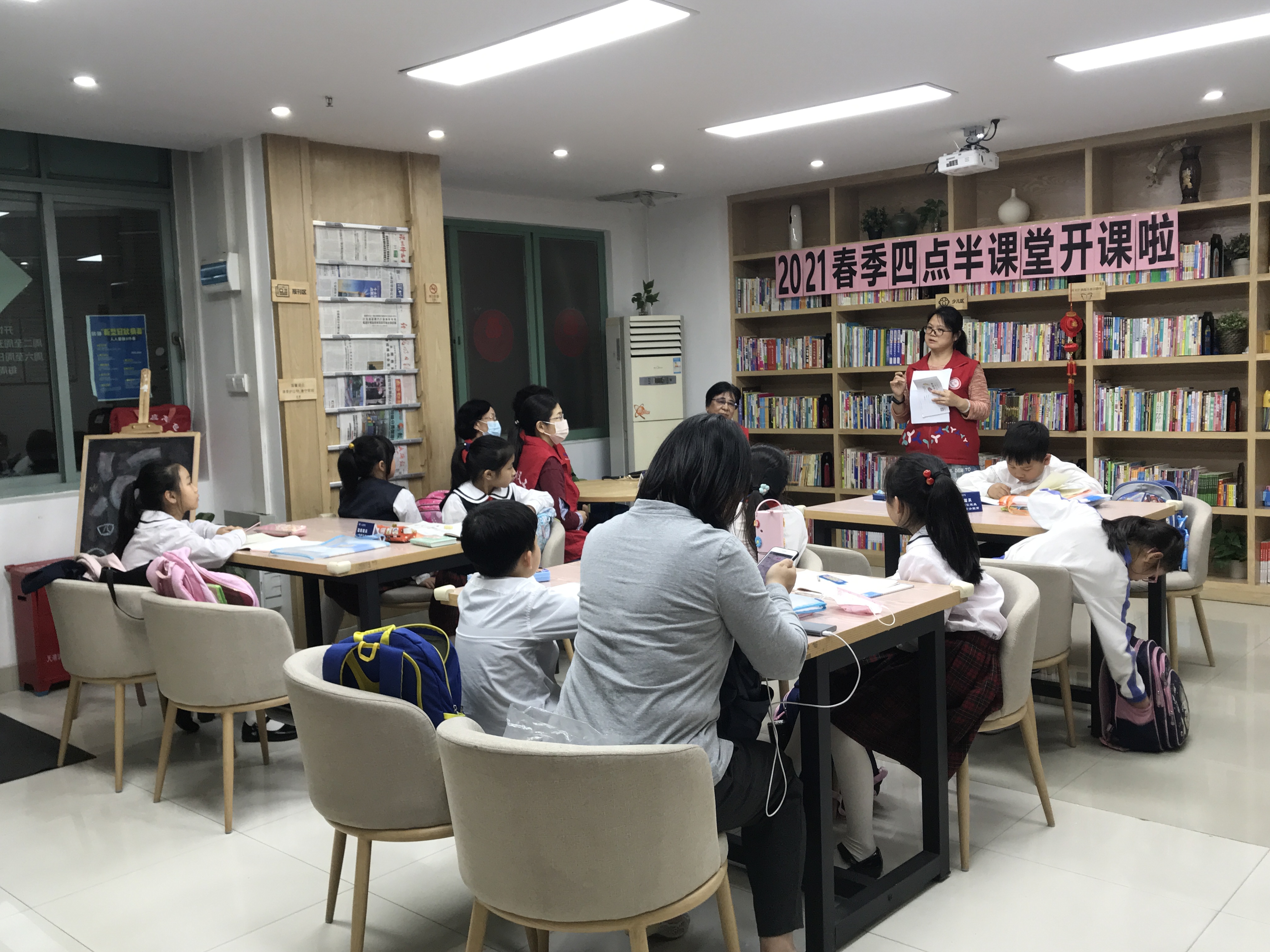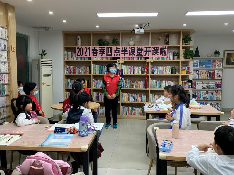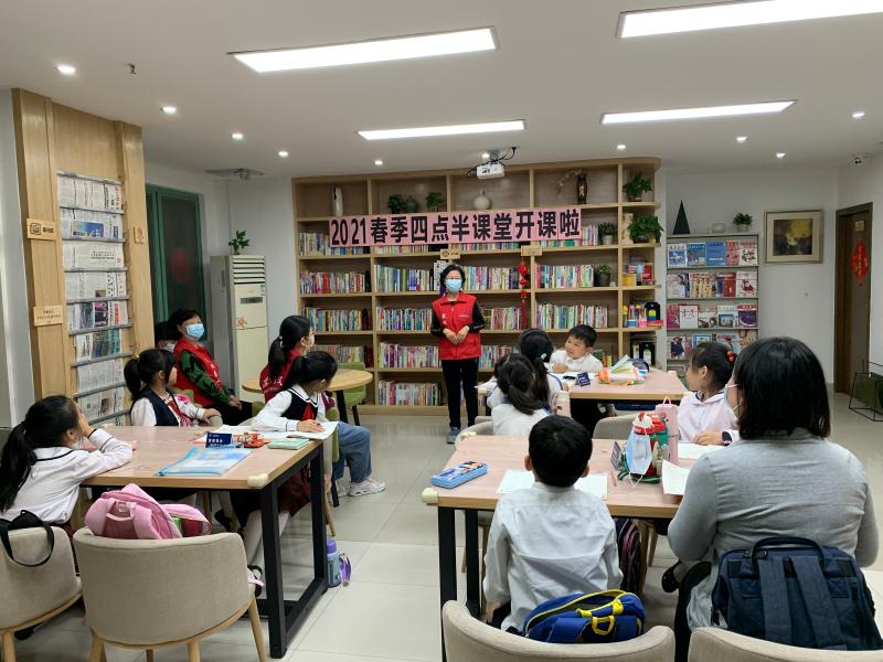 关爱社区未成年人教育,东乐社区党委引领,2021年春季四点半课堂”,31日下午在乐读图书馆正式开班。东乐社工通过居民微信服务群,招募10对亲子家庭,为放学无人监管的小学生,提供社区公益服务场地用于写作业。