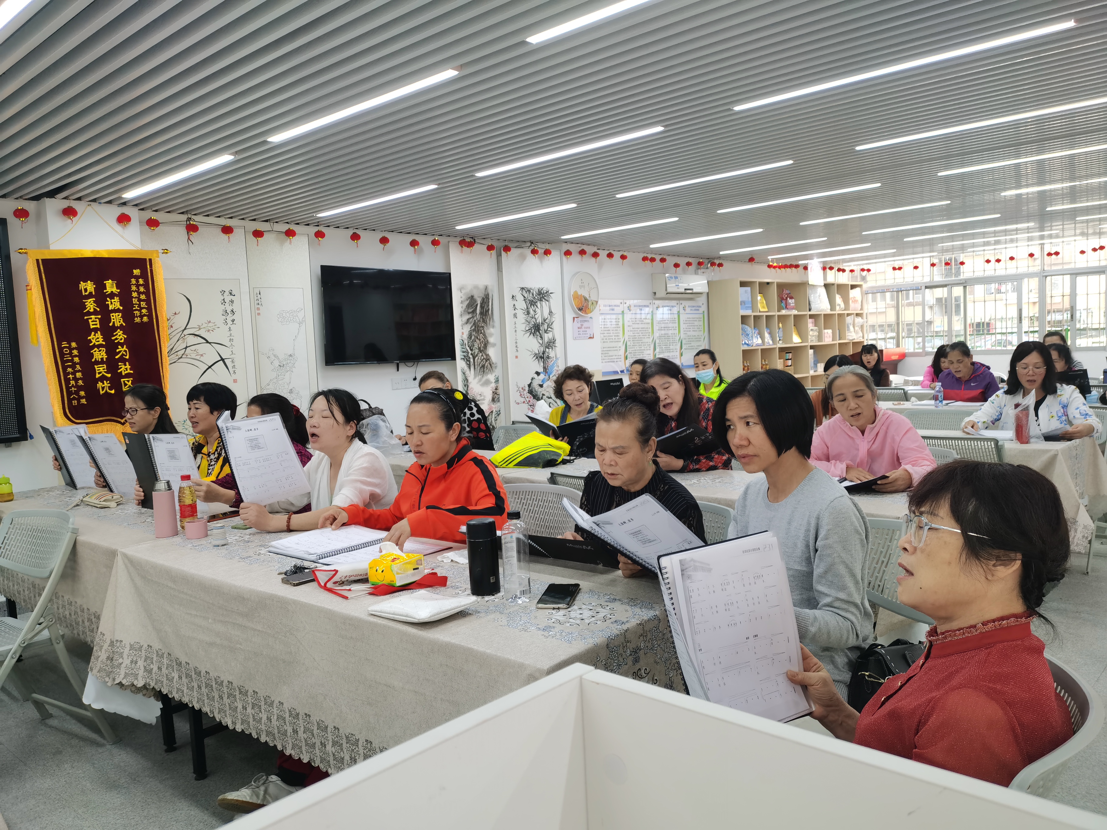 东乐社区党委,党群服务中心,响应为民办实事理念,增强民生福祉,链接资源在本社区长者服务中心开展巾帼教育妈妈合唱团,提高妈妈们的审美情趣,充实妈妈们的业余生活。