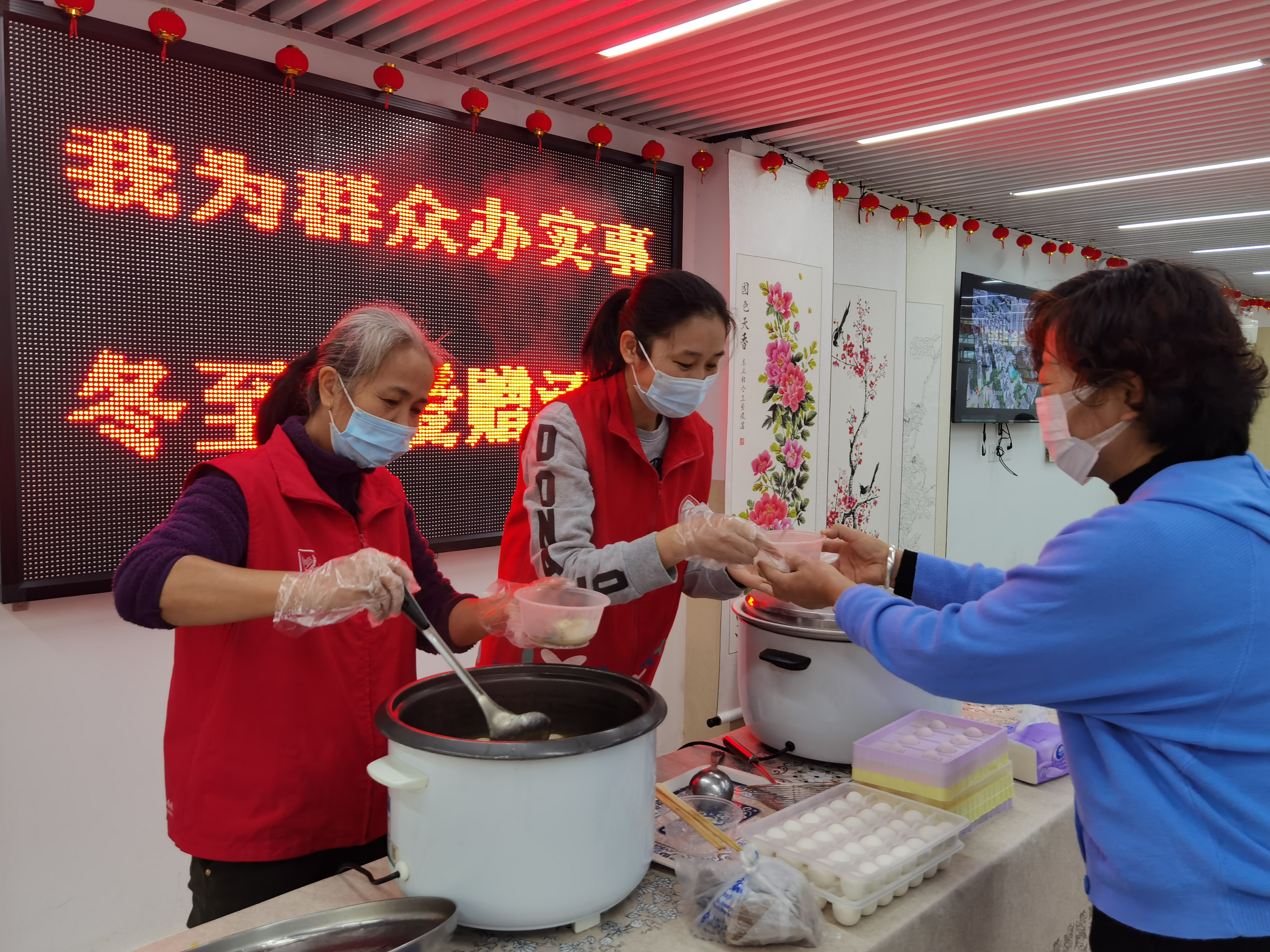随着天气转冷,水文水质中心党支部一行还为就餐居民们送来汤圆,让大家在冬至品尝暖呼呼的食物,增添了节日氛围,温暖了社区居民。同时,市水文水质中心党支部党员和社区党员义工在居民就餐期间为居民提供便利服务。