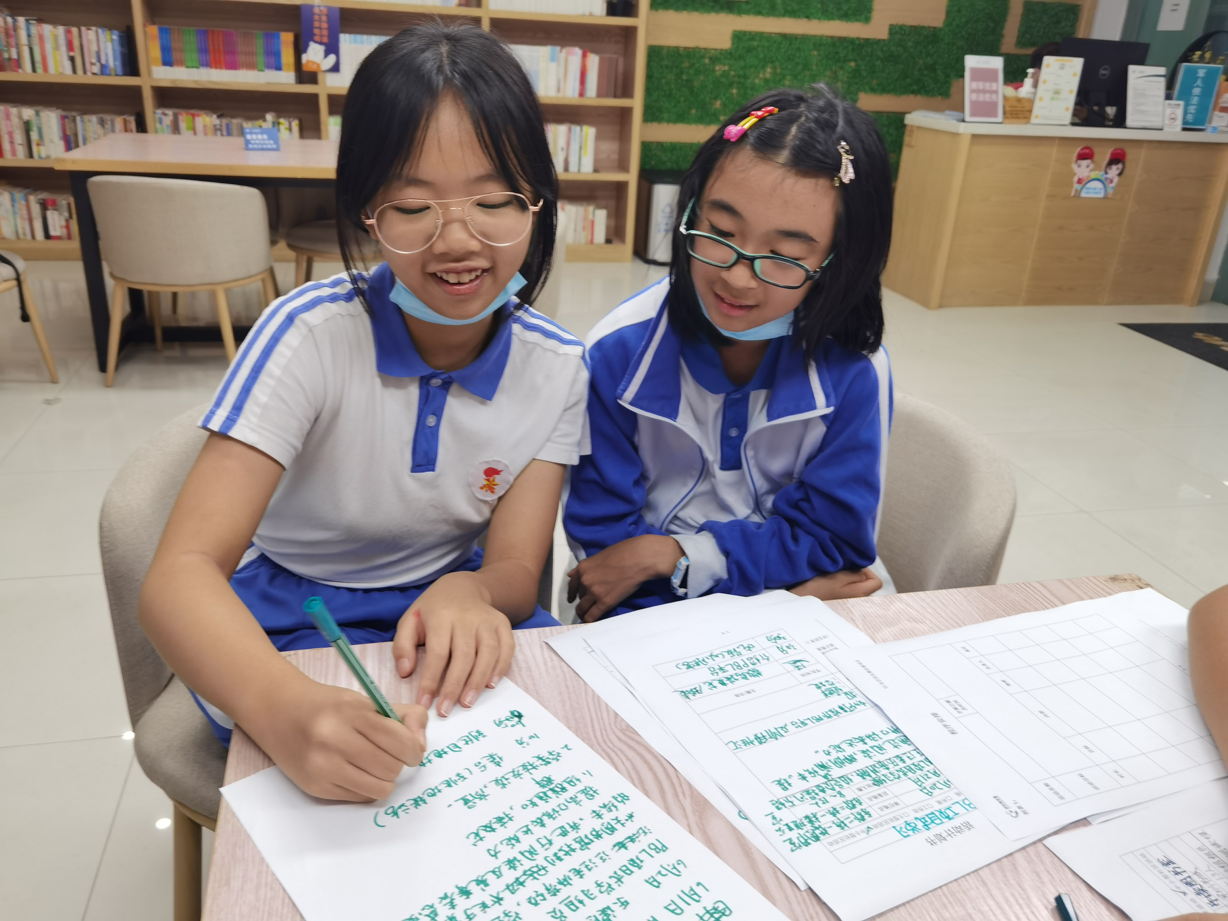 5月20日,东乐能说“绘”道PBL项目式学习小组学员在乐读图书馆学习做活动计划。社工为学员们提供活动计划书模板这一实践工具,让学员从学习的参与者向策划者组织者转变,提升学员们的组织能力;同时通过分享自己草拟的活动计划,在自评和互评中提升各自的口语表达能力。