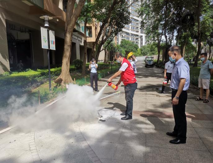 随后开展消防应急演习,演习内容包含了灭火器的正确使用方法、对初期火灾的扑灭、人员安全疏导等。在场的物业工作人员、居民们纷纷上前亲自体验了如何正确使用灭火器。整个演习过程紧张有序,人员处置方式正确迅速,达到了预期效果。