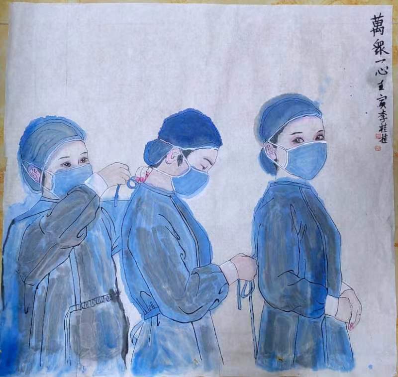 一张白纸、一支画笔,来回勾勒间,记叙防疫一线感人瞬间。居民执笔为刃,以画讴歌战斗一线最美逆行身影,凝聚抗击疫情的强大精神力量。通过多副笔墨作品描绘出了对一线工作人员的敬意。