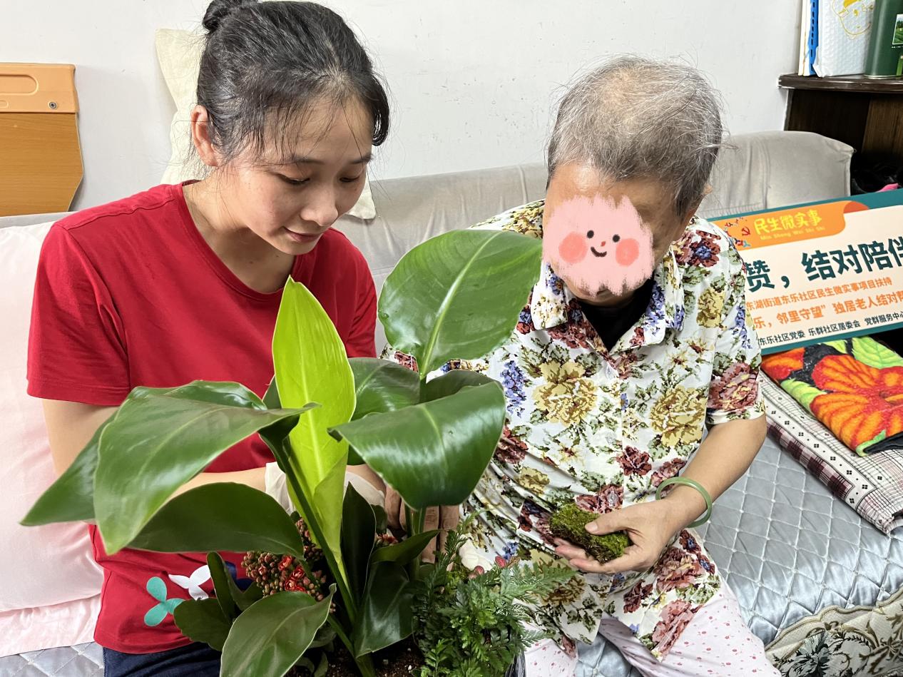 操奶奶是帮扶对象之一,因身患肿瘤疾病,正在经受漫长而痛苦的抗癌治疗,病痛的折磨让奶奶心情低落,对治病失去信心,产生厌世的负面情绪。社区的结对帮扶活动中,银琴社工及其他工作人员还有志愿者们多次走进了操奶奶的家中,一起关心鼓励操奶奶。在细心聆听奶奶过往的经历时,挖掘她的正向经验,把过往的正向经验转变成优势和能力增强她的自信心。社工陪伴奶奶种植她最喜欢的植物,为其进行心理疏导,让她感受到身边有很多人在支持着她,陪伴她面对现在所遇到的困难。