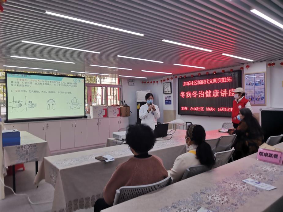 12月12日下午,在东乐社区党委领导下,由东乐社区党群服务中心主办,乐群老年协会协办,东乐社康中医师在东乐社区新时代文明实践站开展中医冬病冬治健康讲座。