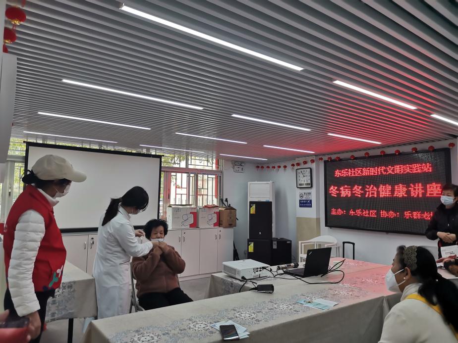 12月12日下午,在东乐社区党委领导下,由东乐社区党群服务中心主办,乐群老年协会协办,东乐社康中医师在东乐社区新时代文明实践站开展中医冬病冬治健康讲座。