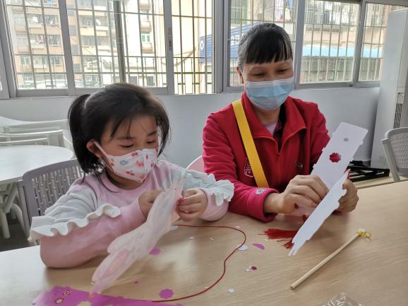现场活动内容丰富,有党建、创文等趣味的互动游戏;手工制作古风灯笼;现场品尝汤圆,前来参加活动的东乐居民个个脸上笑意盈盈。在东乐社区党群服务中心社联社工和义工们的指引下,小朋友们一起做趣味互动游戏——重走长征路,大朋友小朋友一起做花灯,吃汤圆。现场氛围甜甜蜜蜜,幸福满满。