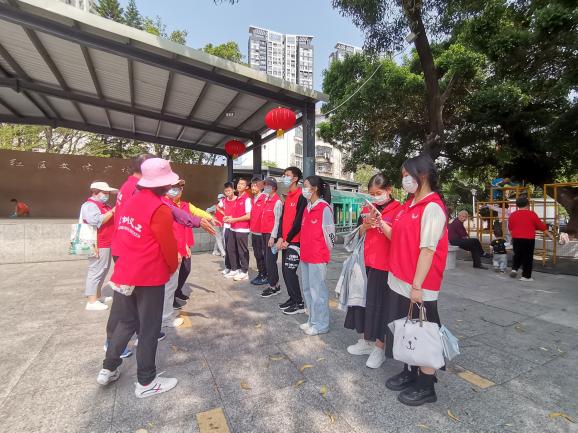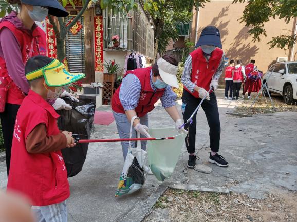 另一边,东乐社区党群服务中心社工组织社区义工,让义工组成社区志愿服务督导队,由义工组长带领青少年义工和亲子义工游走社区楼栋间,进行创文环境保护,主要工作内容有:立拍立整,垃圾随手捡,入户宣传垃圾分类,清洁广告栏,铲除小广告等。