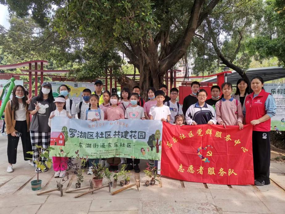 为了培养未成年人爱护环境的意识,探索植物生命的真谛,保护未成年人的身心健康,同时为提高青少年对植树节的认知和参与感,2023年3月12日恰逢中国植树节,在东乐社区党委的大力推动下,社区党群服务中心社工携手深圳市罗湖区捌零柒社区公益发展中心,在东乐花园文体广场“乐榕园”开展了东乐社区绿色低碳植树活动。