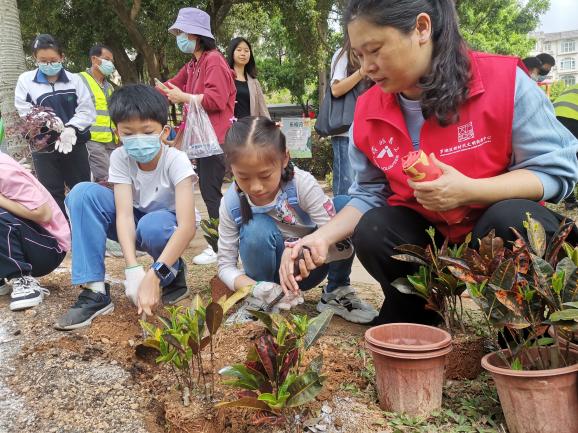 12日上午,青少年志愿者们在东乐社区新时代文明实践站集合,由工作人员简单介绍了中国植树造林的情况和接下来活动的流程与安全知识,随后,在工作人员的带领下,大家来到“乐榕园”开始植树活动。“乐榕园”里划分了5个区域,小志愿者们分成5小组,每一组负责一个区域,由现场专职的园艺师教授种植知识。大家分工合作认真细心地种植植物,每位参与者虽然很累,但脸上都是带着微笑的,他们觉得本次活动很有意义。
