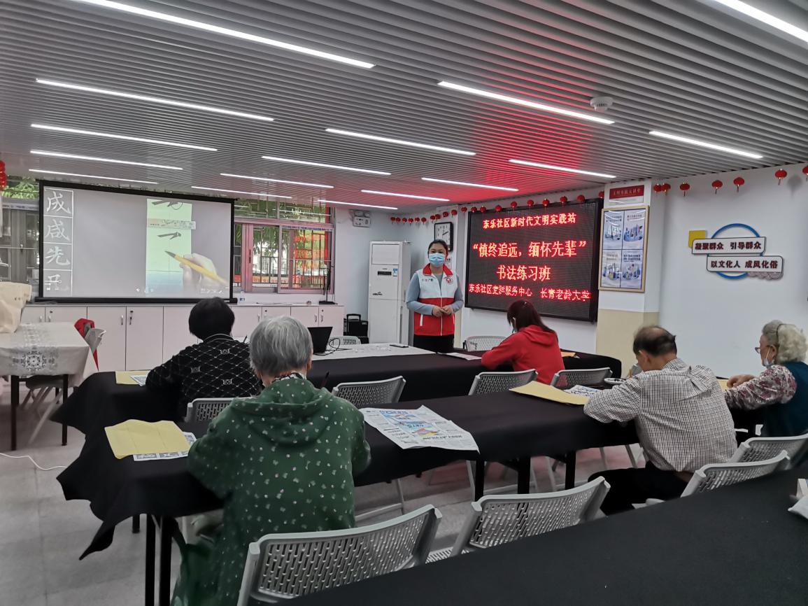 东乐社区新时代文明实践站开展“文明过清明,笔墨寄哀思”长青老龄大学书法班