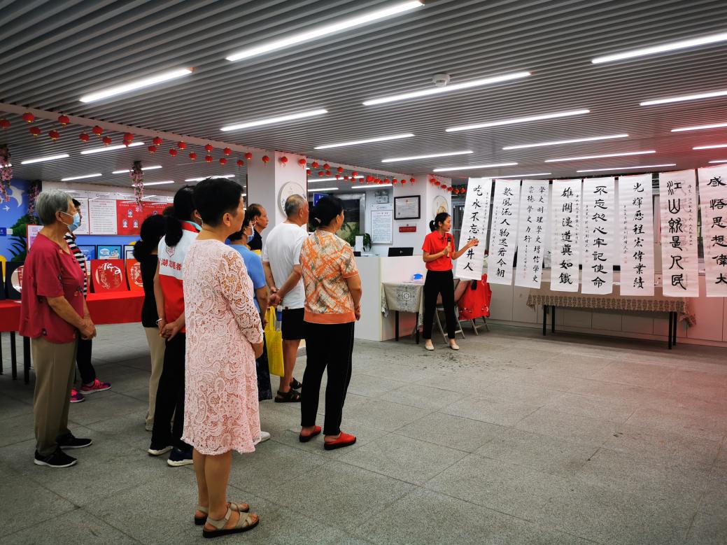 书韵绕笔尖,丹青绘豪情,借咫尺纸面,执笔献岁,以盎然昂扬之意气,寄写中华之文雅思情和书风画趣。社工引导参观者从长青老龄大学的建设和办学理念,深入讲解了办学情况和作品内容的创作情感,促进了党员、群众书画爱好者以书言志,以画寄情,一幅幅书画作品充分传达出社区党员和群众对党、对祖国的无限热爱之情。