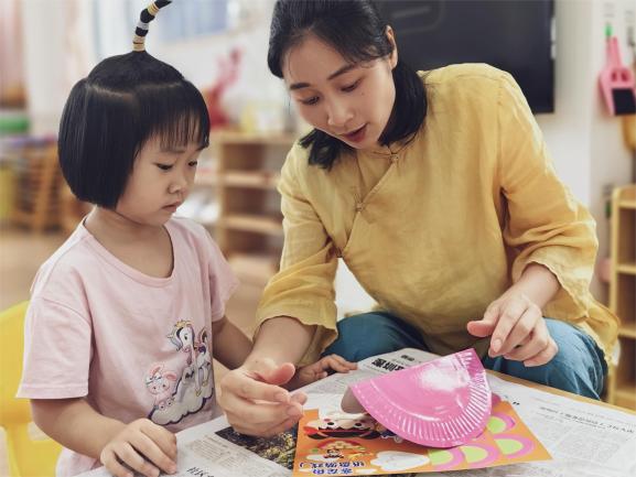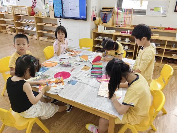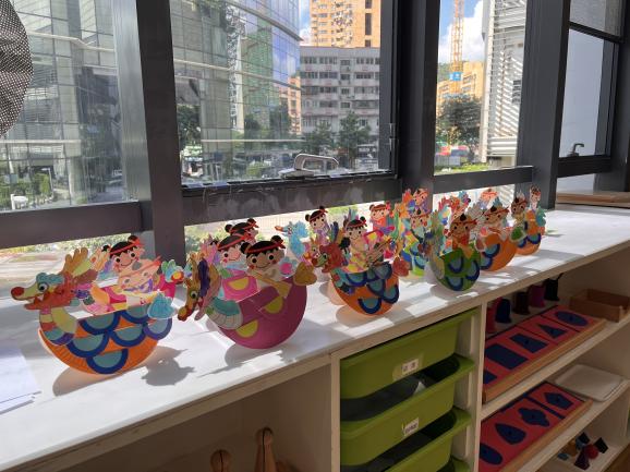 随后,在社工的带领下开始制作小朋友们的专属龙舟。大家拿到材料,化身设计师,用彩色笔在纸盘上涂涂画画,最后组装在纸盘上。一艘艘精气神十足的龙舟船便活灵活现地制作好了,孩子们成就感满满。