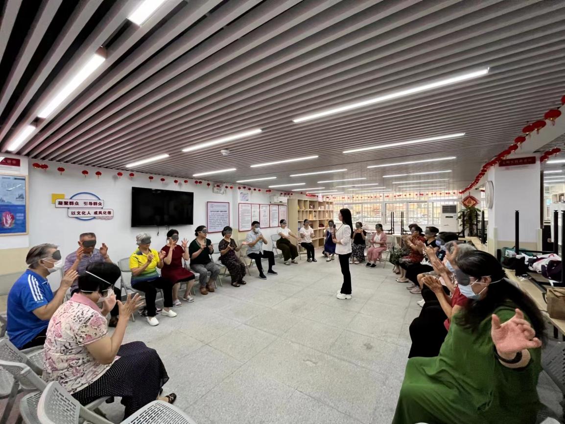 心理咨询师通过讲解健康家庭模式、病态家庭模式等概念,让居民了解家庭成员之间的互动对家庭产生的直接影响。随后在老师的带领下,营造安全、自由的场域,运用舞蹈活动过程或即兴动作,包括表情和肢体的律动,整合个体情绪、情感、身体、心灵、认知和人际等层面的信息,发现并与内在的潜意识进行对话,以达到宣泄压抑情绪,表达真实自我,促进身心灵整合的疗愈效果。从而让参与者意识到亲密关系是最深层的人与人互动的关系,身、心、灵全面互动才能产生亲密关系,而亲密关系的质量会直接影响我们的生活质量。