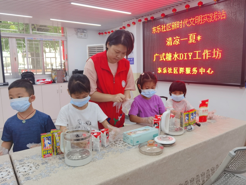 东乐社区新时代文明实践站为社区儿童青少年开展清凉一夏·广式糖水手工作坊