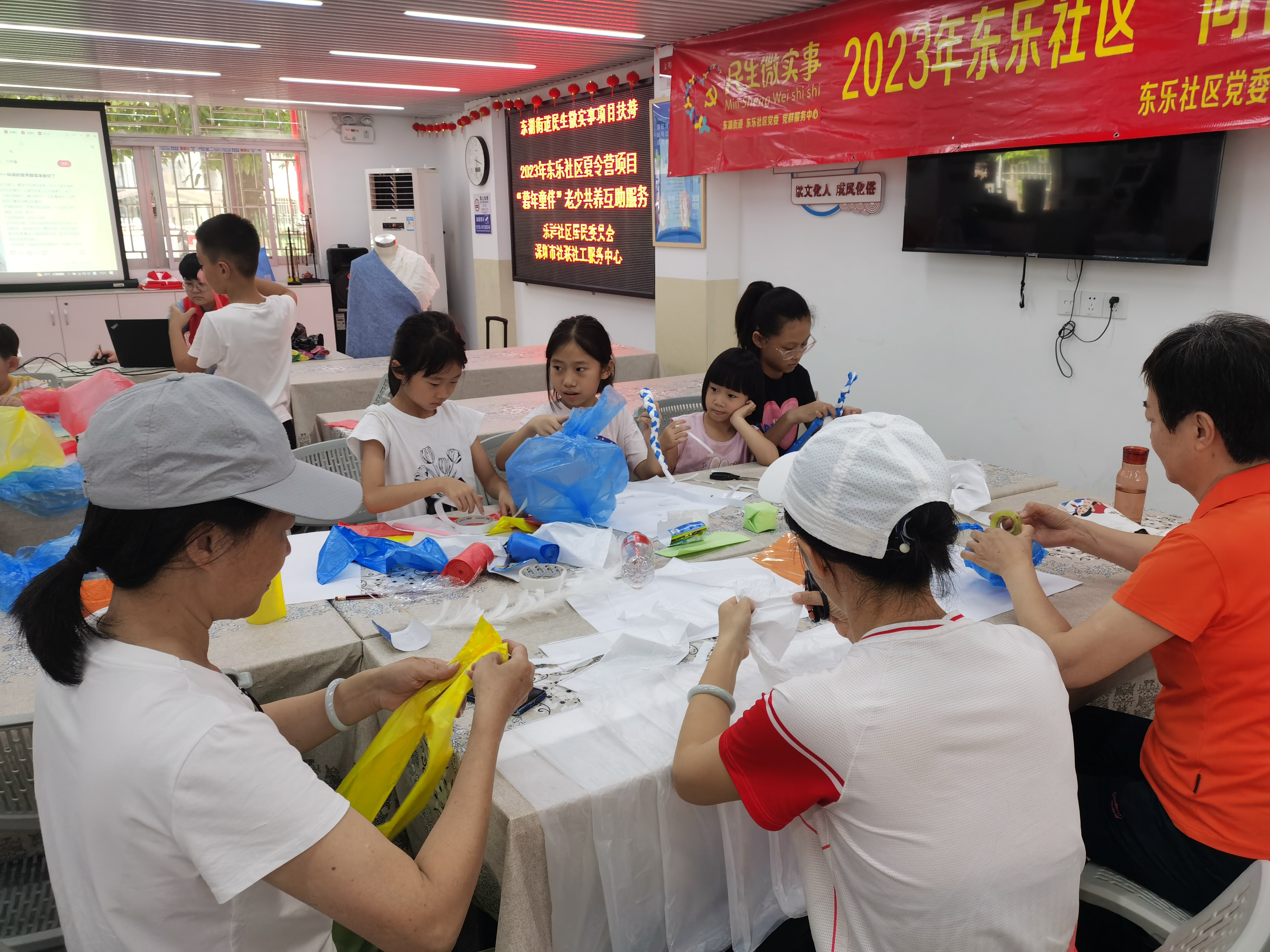 罗湖家园网讯:8月2日下午,2023年东乐社区夏令营“暮年童伴”社区老少共养互助服务拉开帷幕,本服务包括三场《人人都是艺术家·环保时装工作坊》、两场《小小科学家实践活动》和一场《年代秀游戏体验工作坊》。8月2日下午,环保时装工作坊首先登场,讲师为参与本场活动的长者和青少年,讲解了环保的重要性,服装设计的基本常识,鼓励参与者发挥想象废物利用,设计出自己的时装。