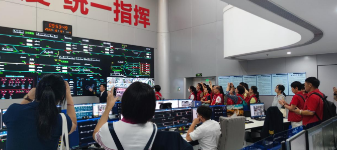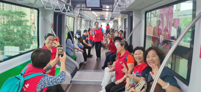 在这次活动中,东乐社工带领着这支义工队伍顺利出行,开启了一场过去·现在·未来的时光之旅。首先,义工们来到了比亚迪全球总部的云巴车站,乘坐比亚迪云巴从文化聚落站向比亚迪北站进发,沿途欣赏了坪山各地标打卡点,以及比亚迪全球总部——六角大楼。