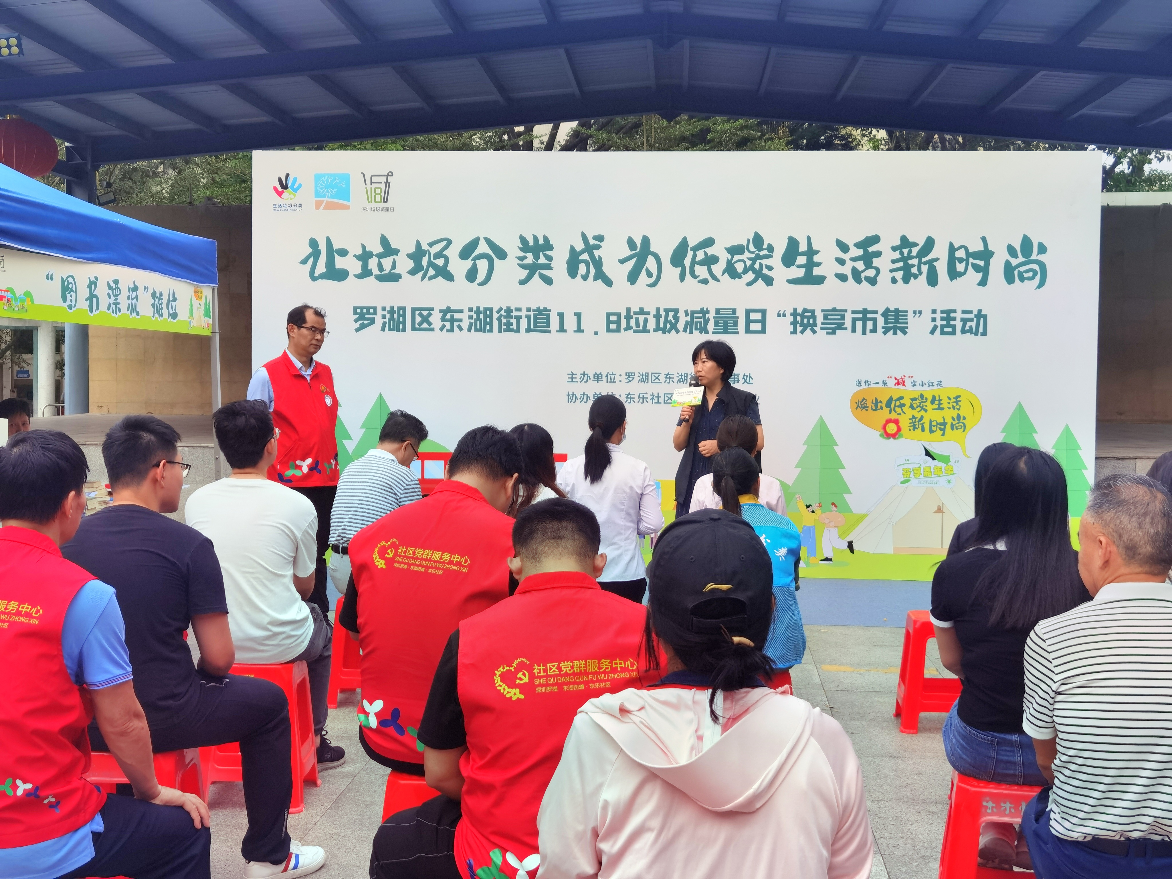 罗湖家园网讯:11 月 9 日,东乐社区党委链接罗湖区东湖街道资源,在东乐社区文体广场,举办了“垃圾减量日”换享市集活动,该活动旨在推动全社会形成垃圾减量分类的低碳生活新时尚。