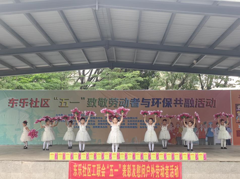 活动于4月29日下午15:30准时开始,现场气氛热烈而庄重。主持人发表了热情洋溢的开场词,强调了劳动者在社会进步中的重要地位,以及环保对于社区可持续发展的重要意义。紧接着,童乐幼儿园的小朋友们带来了开场舞《春天的故事》,他们天真烂漫的舞姿赢得了在场观众的阵阵掌声。