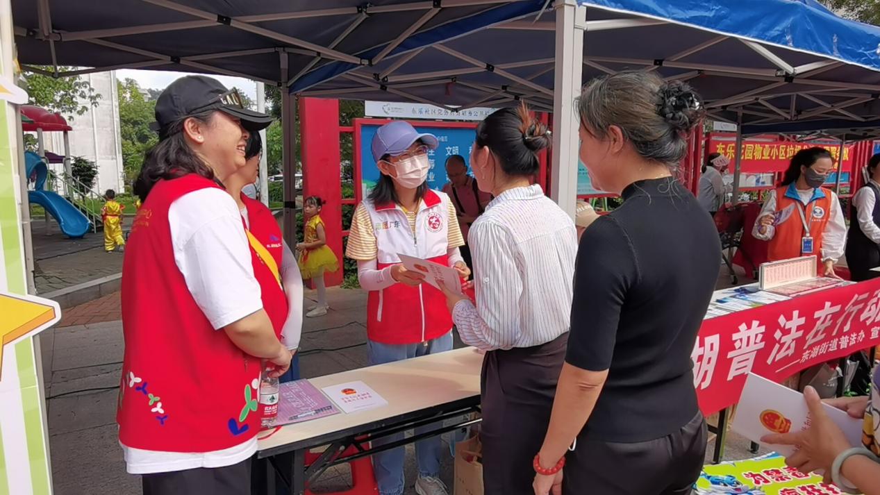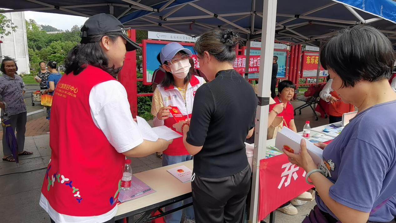 活动现场,东乐社区党群服务社工精心设置了咨询台,摆放了相关法律宣传资料,并通过悬挂横幅、发放宣传手册、现场讲解等方式,向过往居民普及法律知识。特别引人注目的是,社工们注重讲解了《民法典》中关于婚姻家庭的部分,强调了在婚姻关系中双方的权益和义务,同时也宣传了反家庭暴力法,鼓励居民在遇到家庭暴力时积极寻求法律帮助。