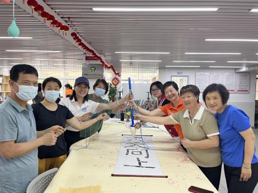 在社工和片仔癀工作人员的带领下,学员们分组体验了“书法接龙”、“笔下生花”等团队拓展项目。活动中,组长们发挥出色的领导力,带领组员们齐心协力完成指定任务,充分展现了书法班的团队合作精神。