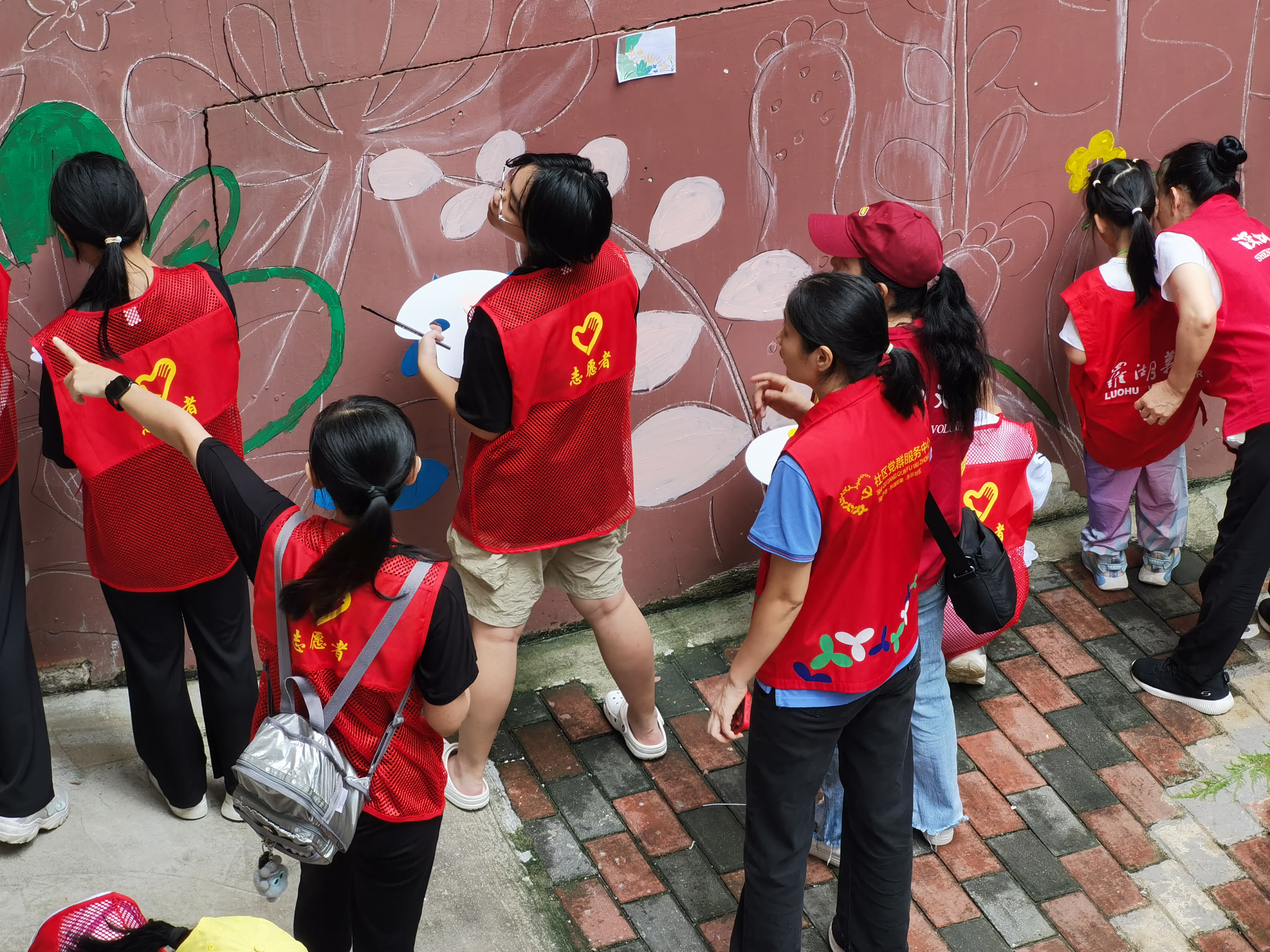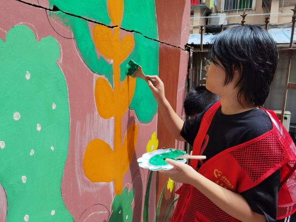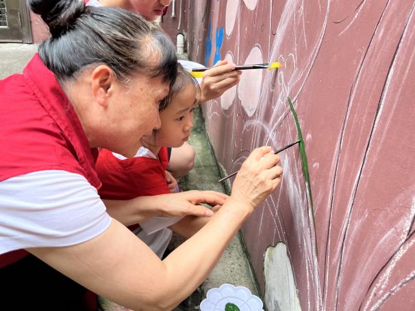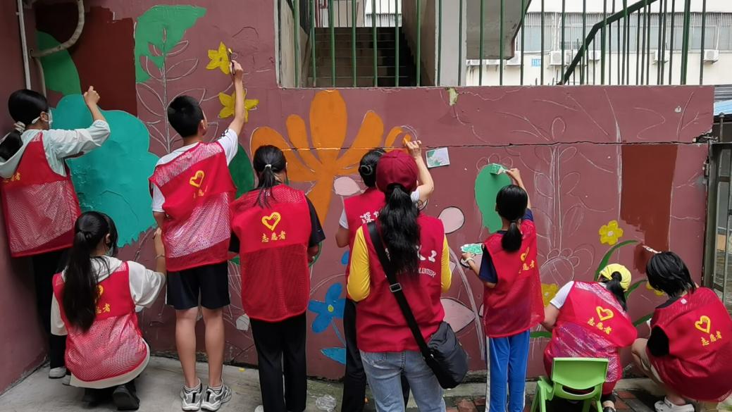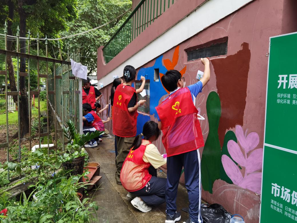 活动伊始,东乐社区党委充分发挥党建引领作用,通过线上线下相结合的方式,广泛动员社区党员、群众及热心公益的志愿者参与。最终,筛选出了20名满怀激情与才华的义工,组成了“桃花源”墙绘团队。他们中既有经验丰富的老师,也有热爱绘画的青少年,共同以画笔为媒介,传递绿色生态理念,为社区增添一道亮丽的风景线。