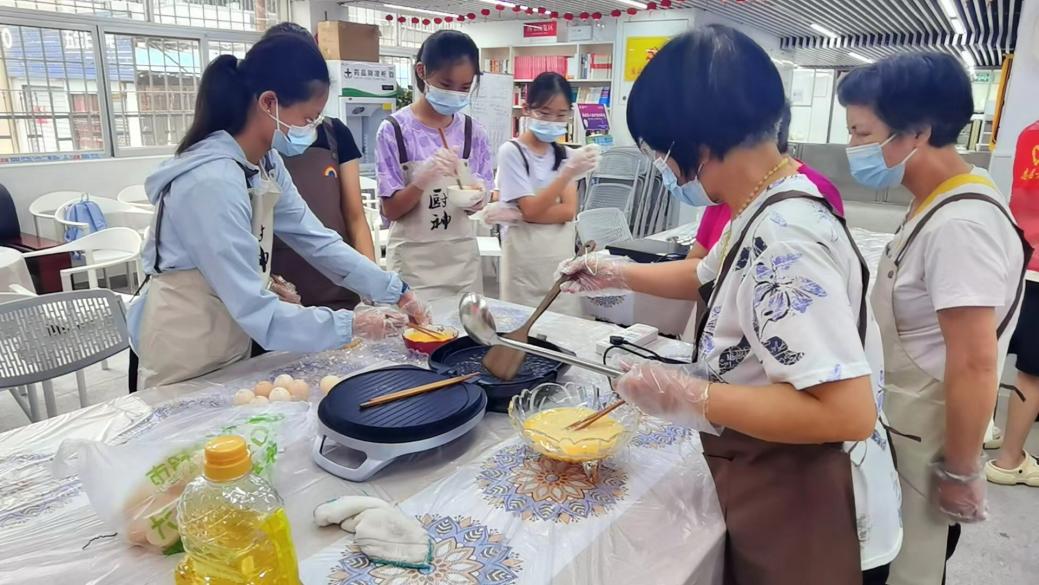 活动现场,10位社区长者化身为“智慧导师”,他们带着岁月的沉淀与生活的智慧,向20名充满朝气的青少年传授紫菜饭团的制作技艺。这不仅是一场美食的传递,更是劳动经验的传承与互助精神的培育。在社工的精心组织下,长者与青少年手把手教学,心连心交流,共同体验劳动的乐趣,感受传统文化的魅力。