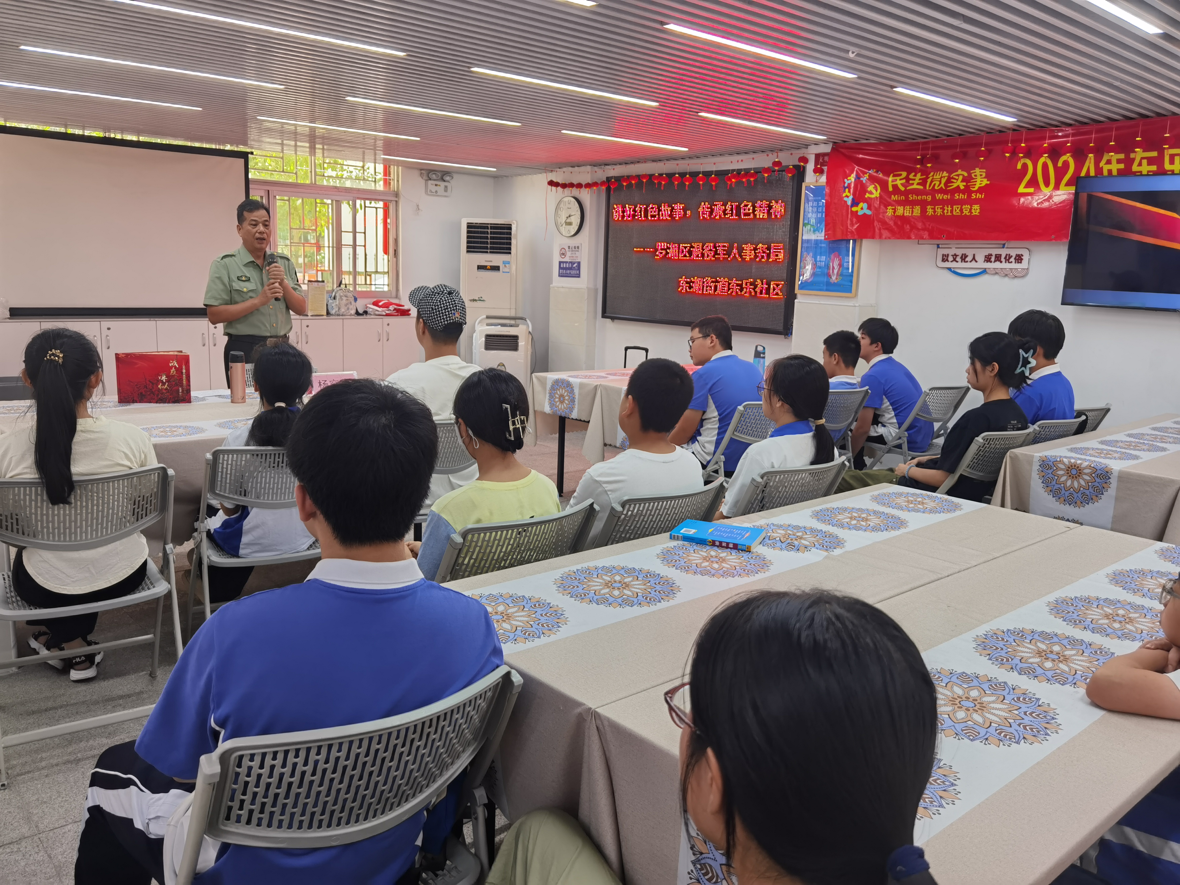 在庄严的八一建军节来临之际,东乐社区党委携手罗湖区退役军人事务局,在东乐社区党群服务中心活动室成功举办了一场别开生面的“红色故事宣讲会”。此次活动旨在通过邀请退役老兵、东湖街道红星志愿队队长杨容生先生,为社区青少年讲述那些感人至深的红色故事,传承革命先烈的不屈意志,激发青少年的爱国情怀与拥军热情。