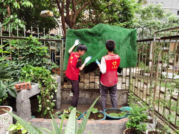 8月20日上午,随着第六场“绿美东乐,半亩桃花源”系列活动的启动,20名社区党员义工与青少年义工携手并肩,为这片即将绽放的“桃花源”铺设了崭新的路面。前期墙面上的彩绘栩栩如生,仿佛引领着人们步入一个梦幻般的仙境;新植的绿意已悄然生根,预示着生命力的勃勃生机。经过紧张而有序的改造建设,一个集休闲、观赏于一体的“桃花源”正式成型,成为社区居民心中新的骄傲。