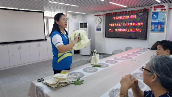 9月19日午后,东乐社区继续上演着温馨与创意的碰撞。“巾帼再启航”失业女性职业技能重塑计划之植物拓印手工包制作活动,吸引了20名社区女性的热情参与。在社联社工的指导下,她们亲手采集自然元素,通过植物拓印的方式将自然之美融入手工包中。这一过程不仅让她们掌握了新的技能,更在创作中找到了自我价值和成就感。