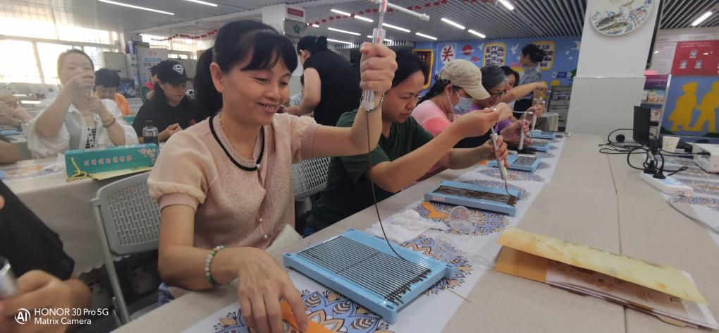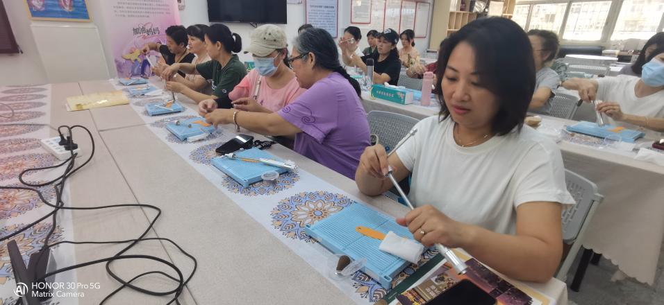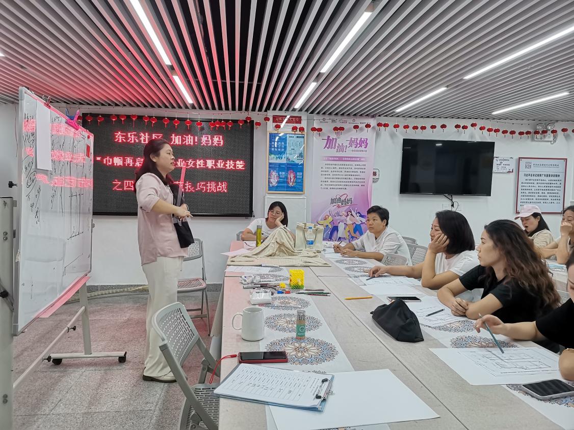紧接着,10月16日下午,秋风送爽之际,东乐社区党群服务中心再次迎来了一场意义非凡的活动——“巾帼再启航”高级布艺技巧挑战小组第二节活动。本次活动由罗湖区妇联与“加油!妈妈——全职妈妈支持计划”项目联合策划,旨在通过布艺技能的学习与提升,为社区失业女性搭建一个自我重塑与职业发展的新平台。20名失业女性带着对美好生活的向往与技能提升的渴望,相聚于此,共同开启了一段崭新的技能学习之旅。活动现场,大家脸上洋溢着期待与兴奋的笑容,东乐社区党委的关怀与支持如同温暖的阳光,照亮了她们前行的道路。