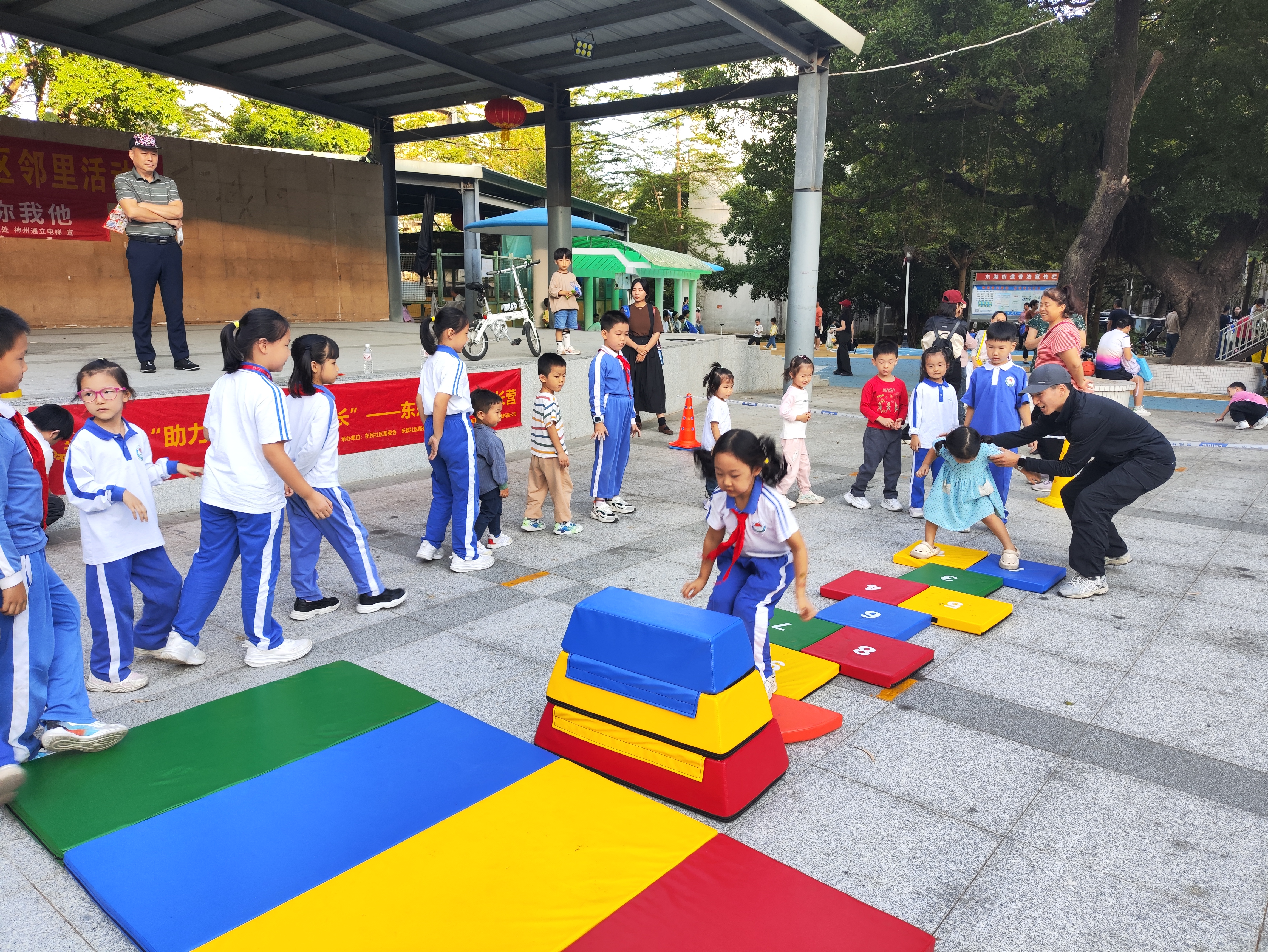 从10月22日起,连续三天的“助力一夏,快乐成长”东乐社区多彩成长营活动在文体广场如期举行,吸引了众多青少年儿童的热情参与。活动内容丰富多样,其中体适能综合训练尤为引人注目。孩子们在教练的带领下,进行了各种有趣的体能训练项目,不仅锻炼了身体,还培养了团队协作和勇于挑战的精神。