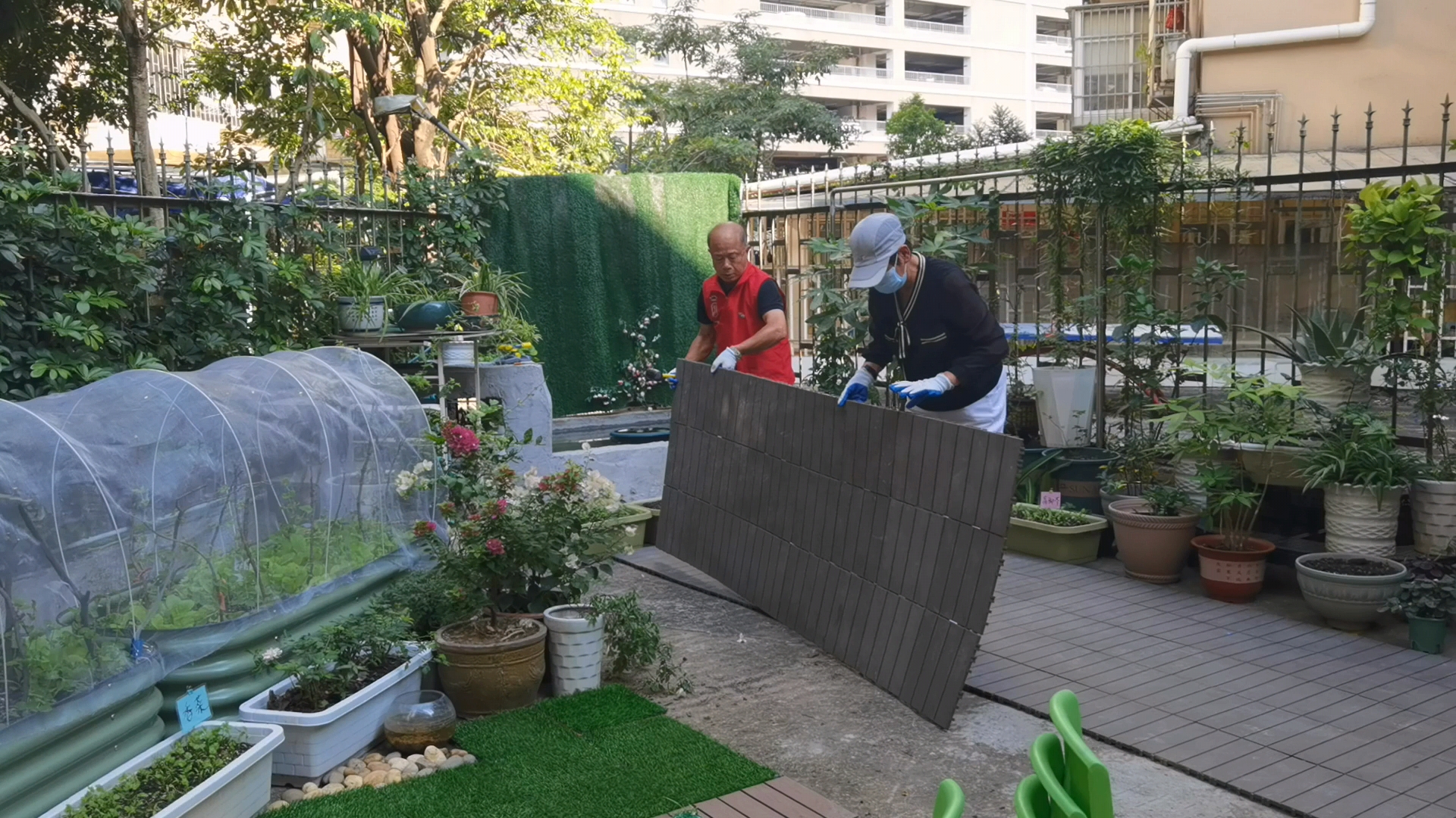 活动伊始,志愿者们首先着手铺设花园地板,他们分工明确,配合默契,有的搬运材料,有的精心铺设,每一块地板都承载着他们对美好环境的向往与追求。紧接着,培土与移栽菜苗的工作也紧锣密鼓地展开,志愿者们小心翼翼地将一株株嫩绿的菜苗植入肥沃的土壤中,仿佛在为这片土地播下希望的种子。