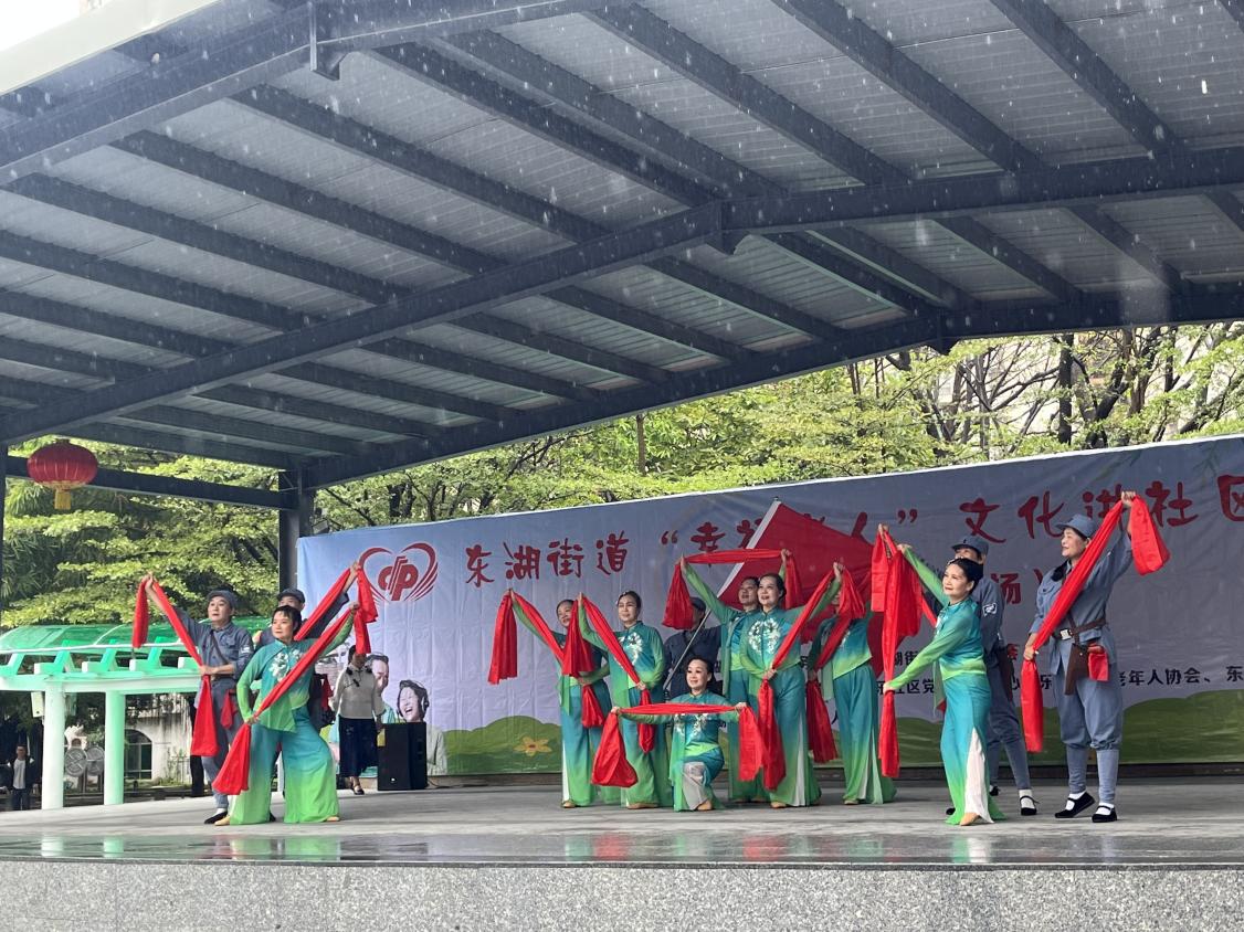 活动现场,来自10个社区的12个精彩节目逐一上演,为社区居民带来了一场视觉与心灵的盛宴。其中,东湖街道彩世界艺术团的民乐合奏《欢庆》拉开了整场活动的序幕,激昂的旋律瞬间点燃了现场的氛围。作为东道主,东乐社区乐群社区老年人协会也带来了两个精彩的舞蹈节目《中华魂》和《军民一家亲》,他们精神饱满、舞姿优美,赢得了现场观众的阵阵掌声。