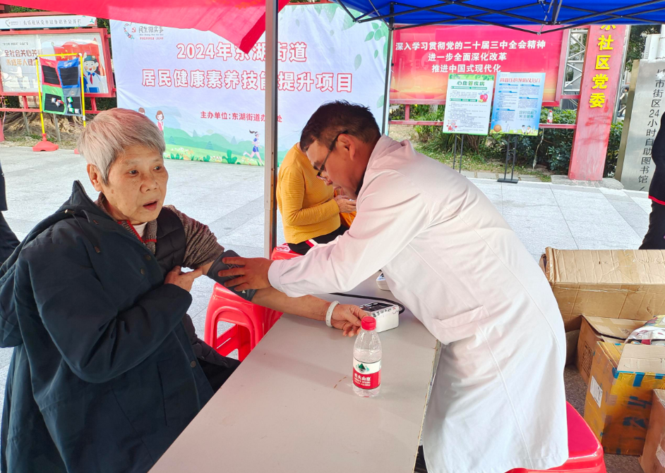 东湖街道:慢病防控入人心,健康素养共提升 2024 年,东湖街道积极响应居民对健康生活的迫切需求,全力推进居民健康素养技能提升项目,一场以慢病健康为主题的户外宣传活动在社区内如火如荼地展开,宛如一场健康知识的盛宴,为辖区居民带来了温暖与关怀。