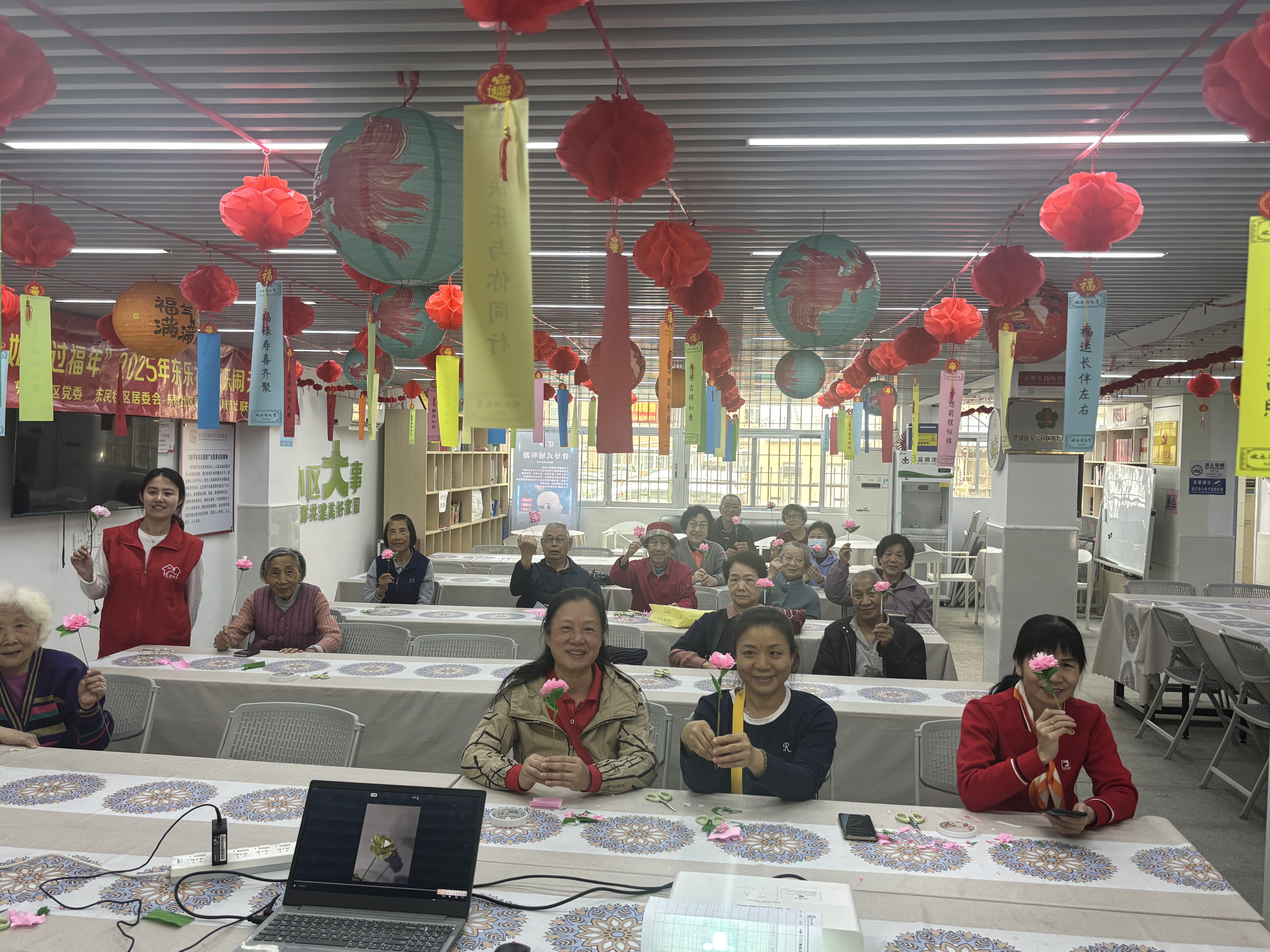 2月17日下午,东乐长者饭堂内春意盎然,一场以“长者匠心,纸艺花开”为主题的皱纹纸手工创作花朵活动温馨展开。在社区党委的精心组织下,15位长者齐聚一堂,他们或低头专注地剪裁,或细心地粘贴花瓣,将一张张普通的皱纹纸变成了栩栩如生的花朵。此次活动不仅锻炼了长者的动手能力,更让他们在创作中找到了乐趣,传递出对美好生活的热爱与向往。