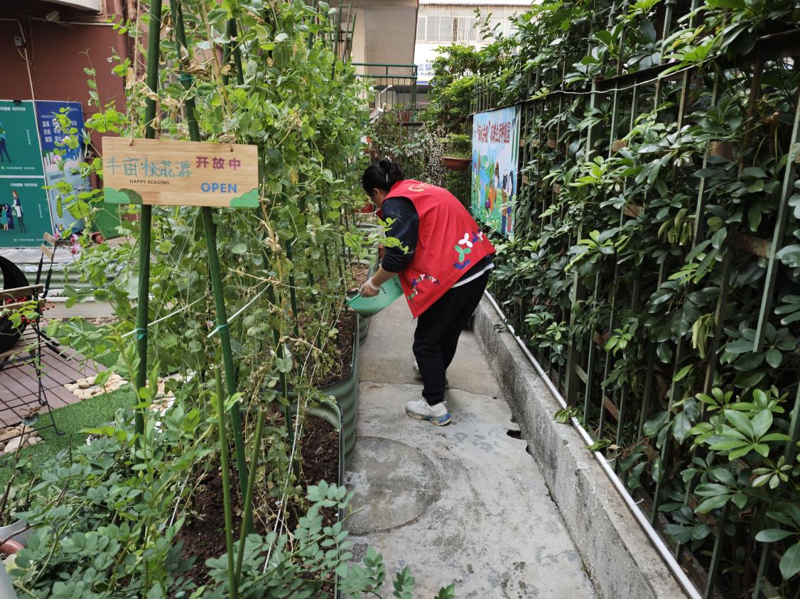 此外,在2月20日上午,东乐社工还组织了一场别开生面的环保活动——清洗鱼池并利用池水浇灌豆苗等植物。此次活动不仅美化了社区环境,还增强了居民的环保意识,让大家深刻认识到资源的循环利用和科学种植的重要性。这也为长者提供了一个亲近自然、体验农耕乐趣的好去处。