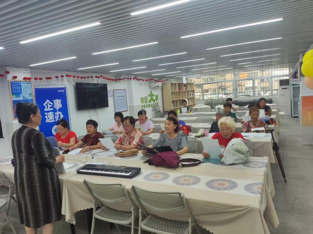 2025年6月4日,为迎接中国共产党成立104周年,东乐社区金声合唱班近20名成员,在东乐社区党群服务中心活动室内,深情演绎《唱支山歌给党听》,以歌声献礼党的生日,深化"百千万工程"建设。