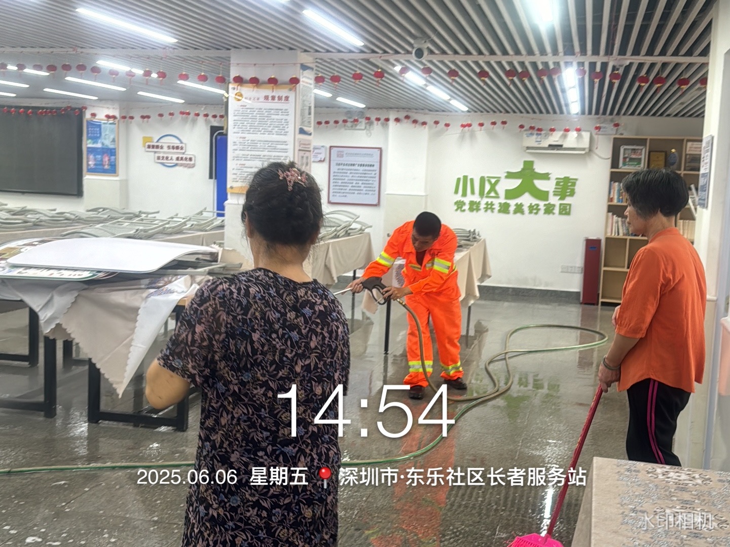 2025年6月6日,为深化“百千万工程”建设,进一步优化社区助餐服务环境,东乐社区组织保洁人员和志愿者开展社区饭堂卫生清洁专项行动,以实际行动践行移风易俗,提升居民幸福感。