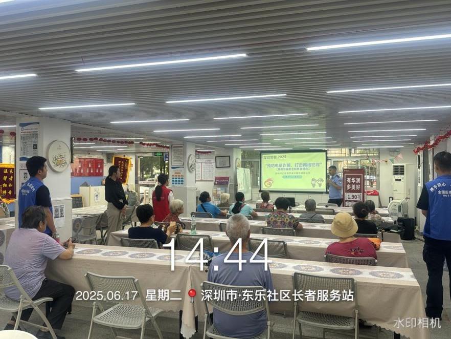 6月17日下午,东乐社区党群服务中心开展“银铃慧眼识骗局,社区反诈共护航”主题宣传活动,25名社区老年居民参与,通过案例讲解、互动问答等形式提升防诈意识,深化“百千万工程”建设,共筑安全社区。